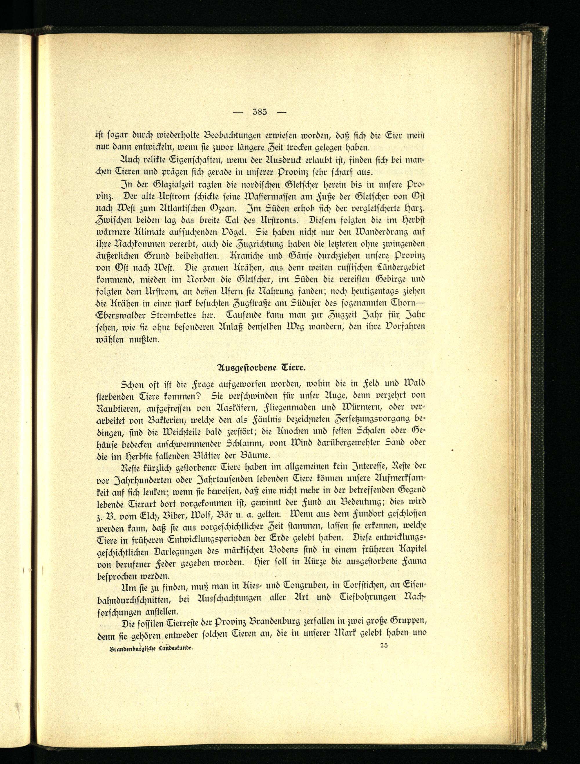 Die fossilen Tierreste der Provinz Brandenburg zerfallen in zwei große Gruppen, denn sie gehören entweder solchen Tieren an, die in unserer Ulark gelebt haben uns