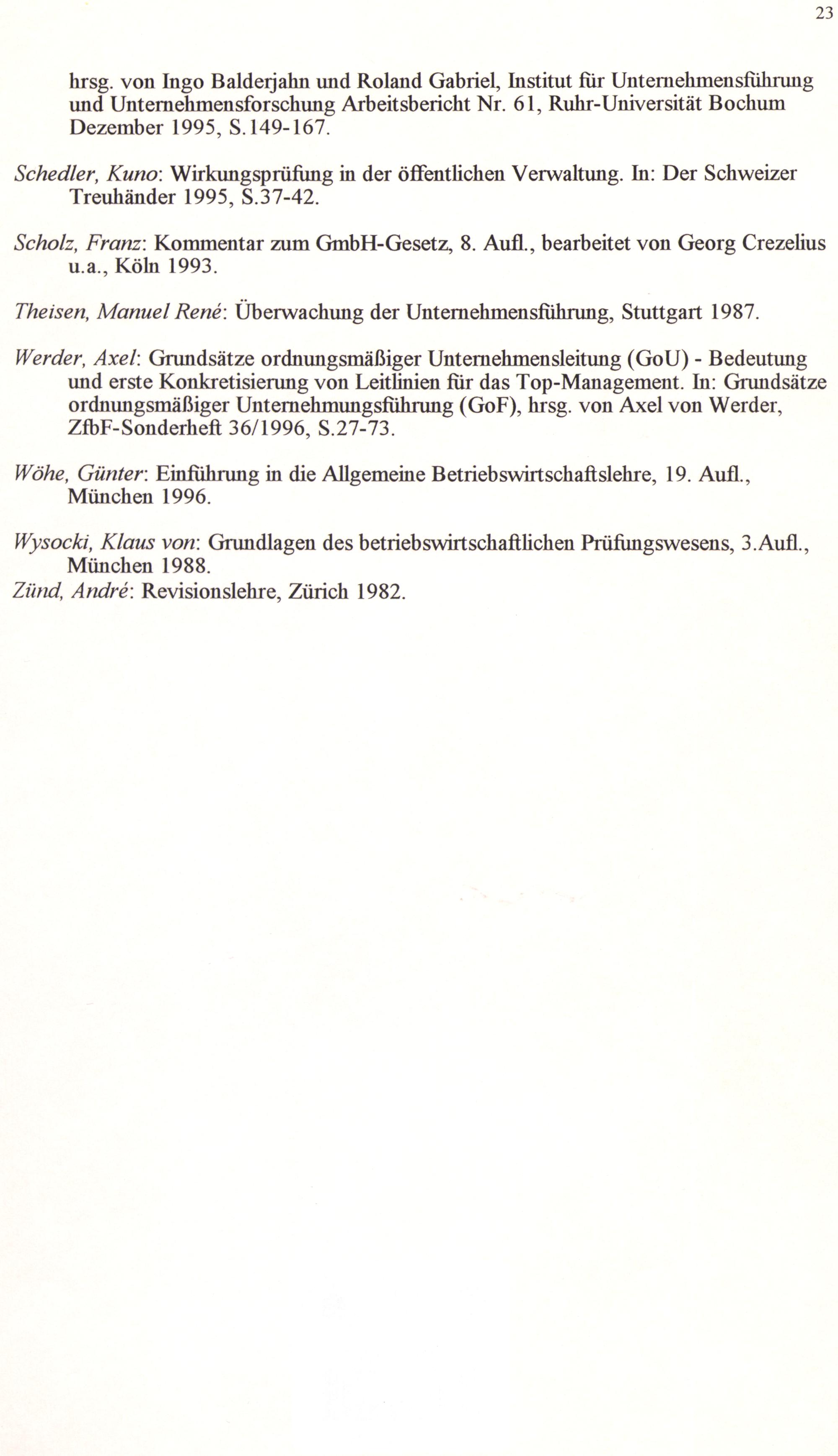 Theisen, Manuel Rene: Überwachung der Unternehmensführung, Stuttgart 1987.