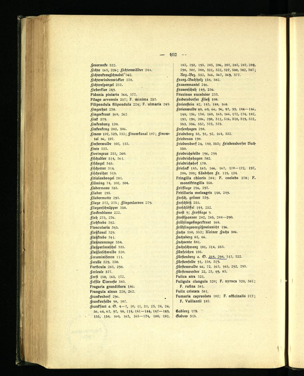 Friesack 445, 453, 466, 467, 470-472, 492, 204, 209; Ländchen Fr. 449, 424. krinxilla ctiloris 284; eoelebs 278; k.