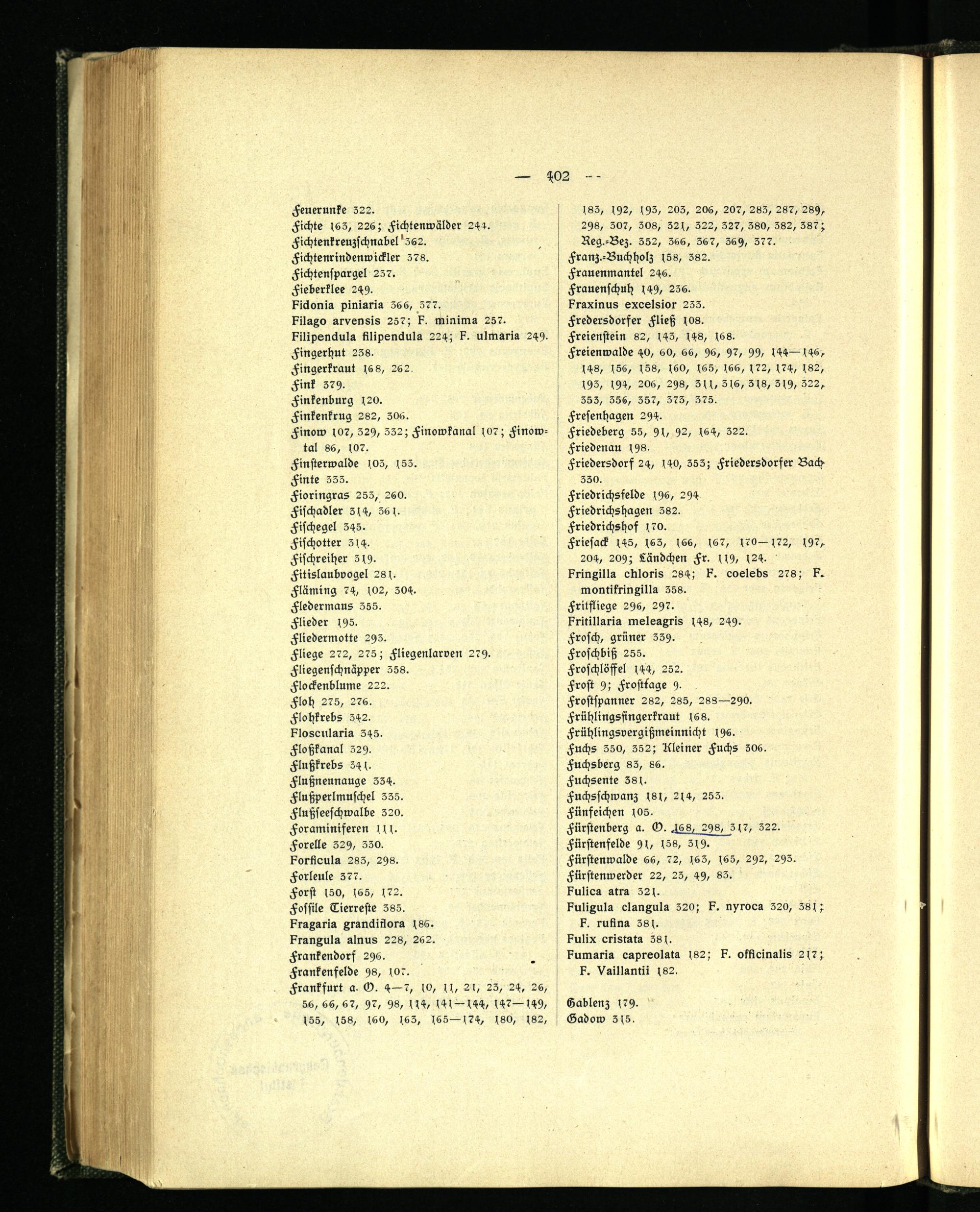 Fürstenberg a. V. .468, 298, 3 ,7, 322. Fürstenfelde 90 lö8, 349.