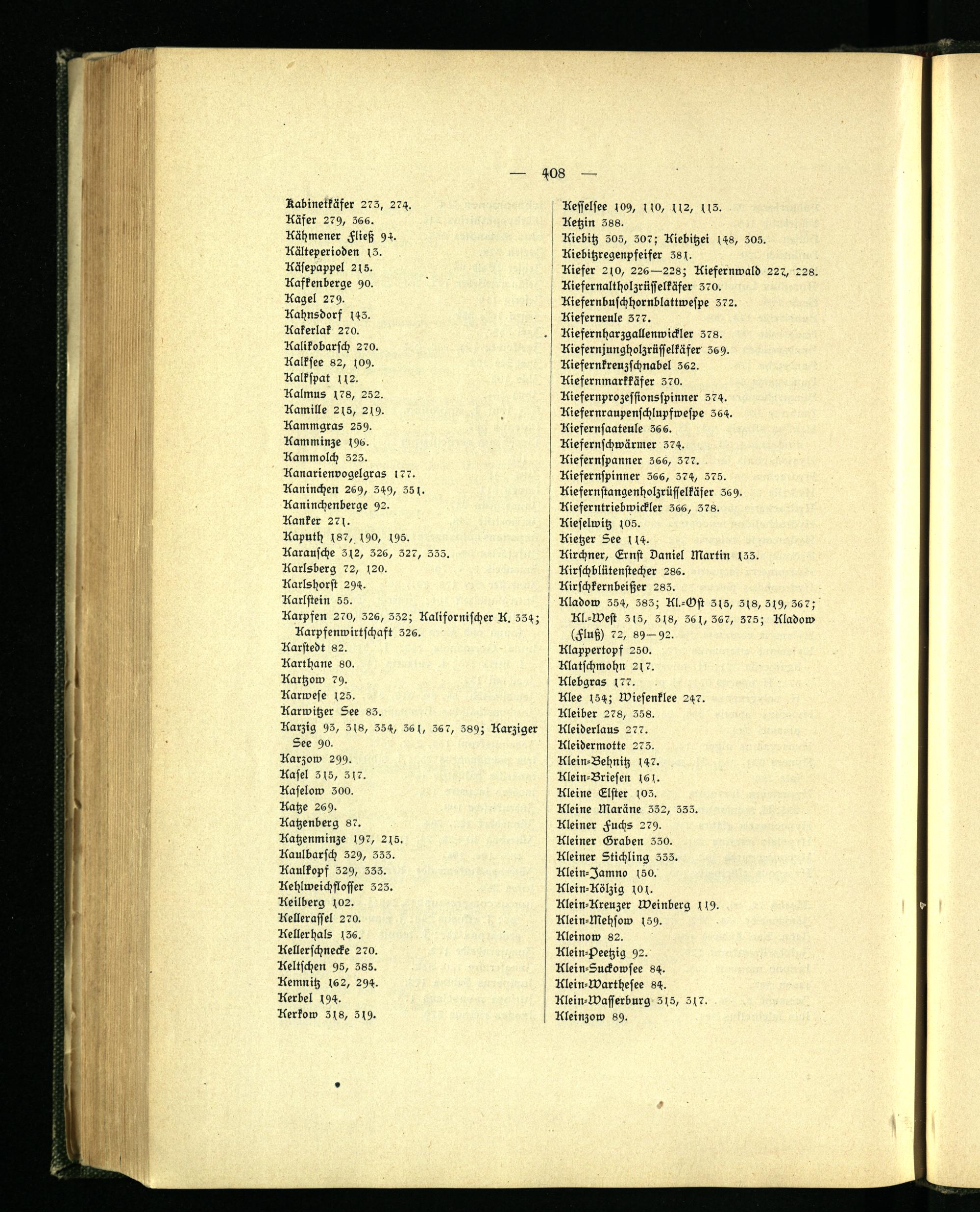 Kiefer 2;o, 226—228; Kiefernwald 227, 228. Kiefernaltholzrnsselkäfer 370. Kiefernbuschhornblattwespe 372.