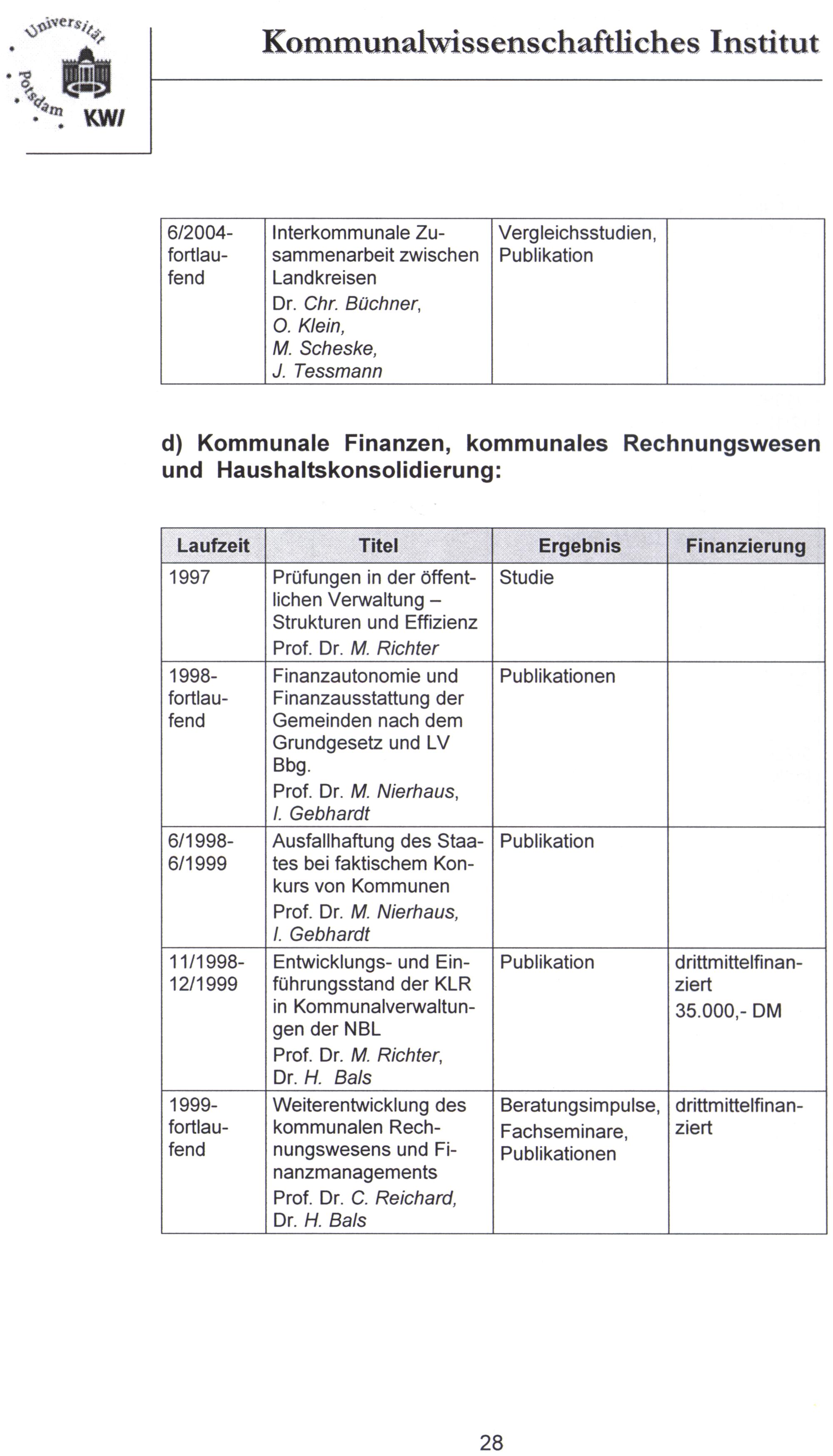 12/1999| führungsstand der KLR in KommunalverwaltunBeratungsimpulse,| drittmittelfinanFachseminare,