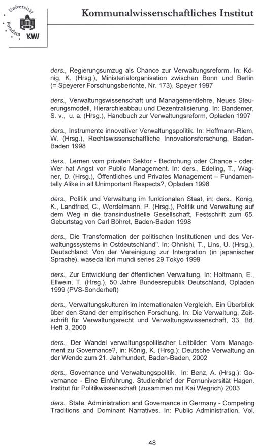 ders., Zur Entwicklung der öffentlichen Verwaltung. In: Holtmann, E., Ellwein, T.(Hrsg.), 50 Jahre Bundesrepublik Deutschland, Opladen 1999(PVS-Sonderheft)