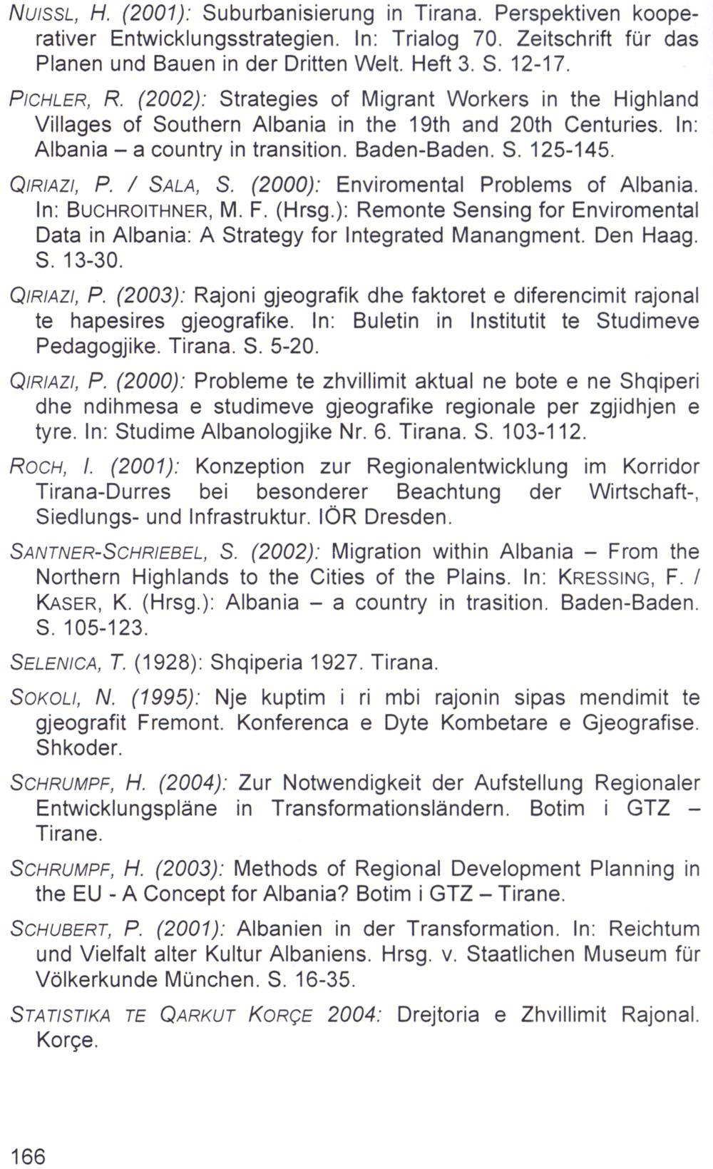 QIRIAZI, P.(2000): Probleme te zhvwvillimit aktual ne bote e ne Shaiperi dhe ndihmesa e studimeve gjeografike regionale per zgjidhjen e tyre. In: Studime Albanologjike Nr. 6. Tirana. S. 103-112.
