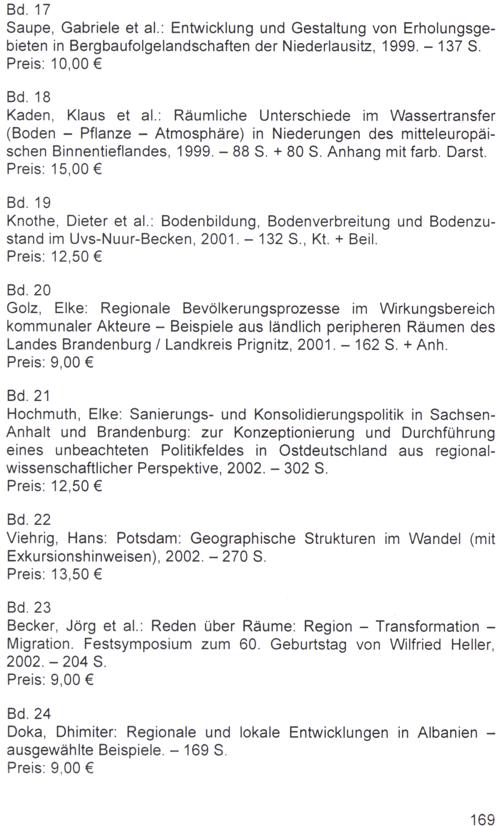 Viehrig, Hans: Potsdam: Geographische Strukturen im Wandel(mit Exkursionshinweisen), 2002.—- 270 S.