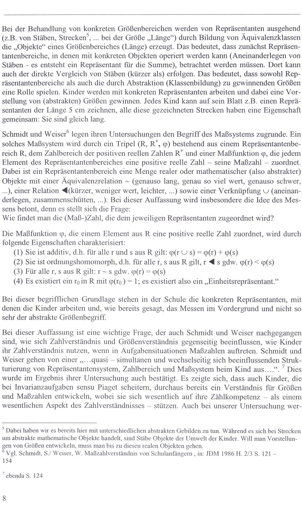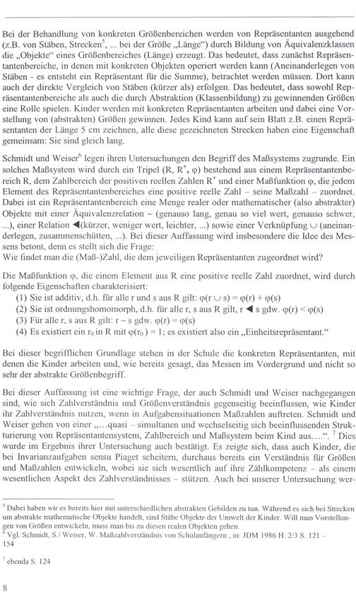 ° Vgl. Schmidt, S./ Weiser, W. Maßzahlverständnis von Schulanfängern, in: JDM 1986 H. 2/3 S. 121—