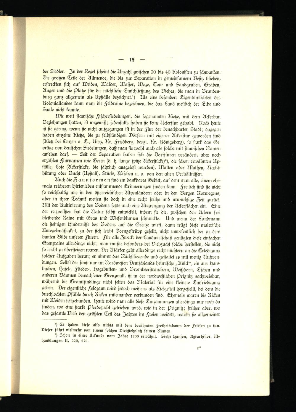 °) Schon in einer Urkunde vom Jahre t200 erwähnt. Siehe Hansen, Agrarhistor. Abhandlungen II, 220, 276.