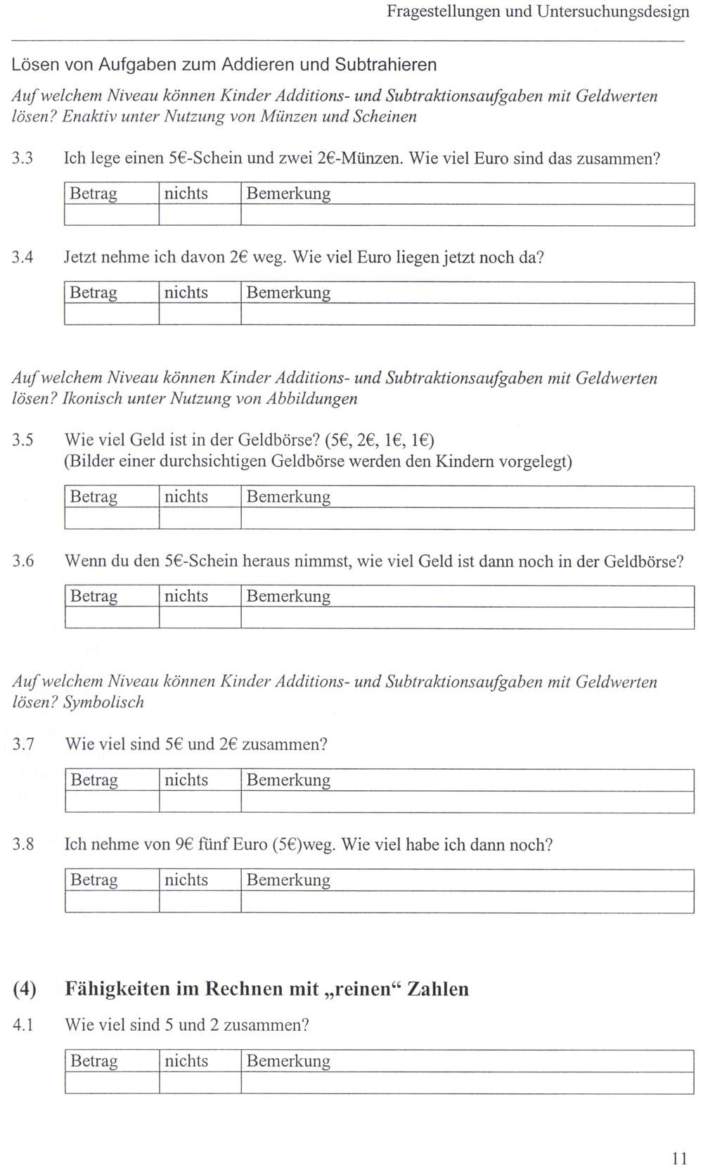 Auf welchem Niveau können Kinder Additions- und Subtraktionsaufgaben mit Geldwerten lösen? Enaktiv unter Nutzung von Münzen und Scheinen