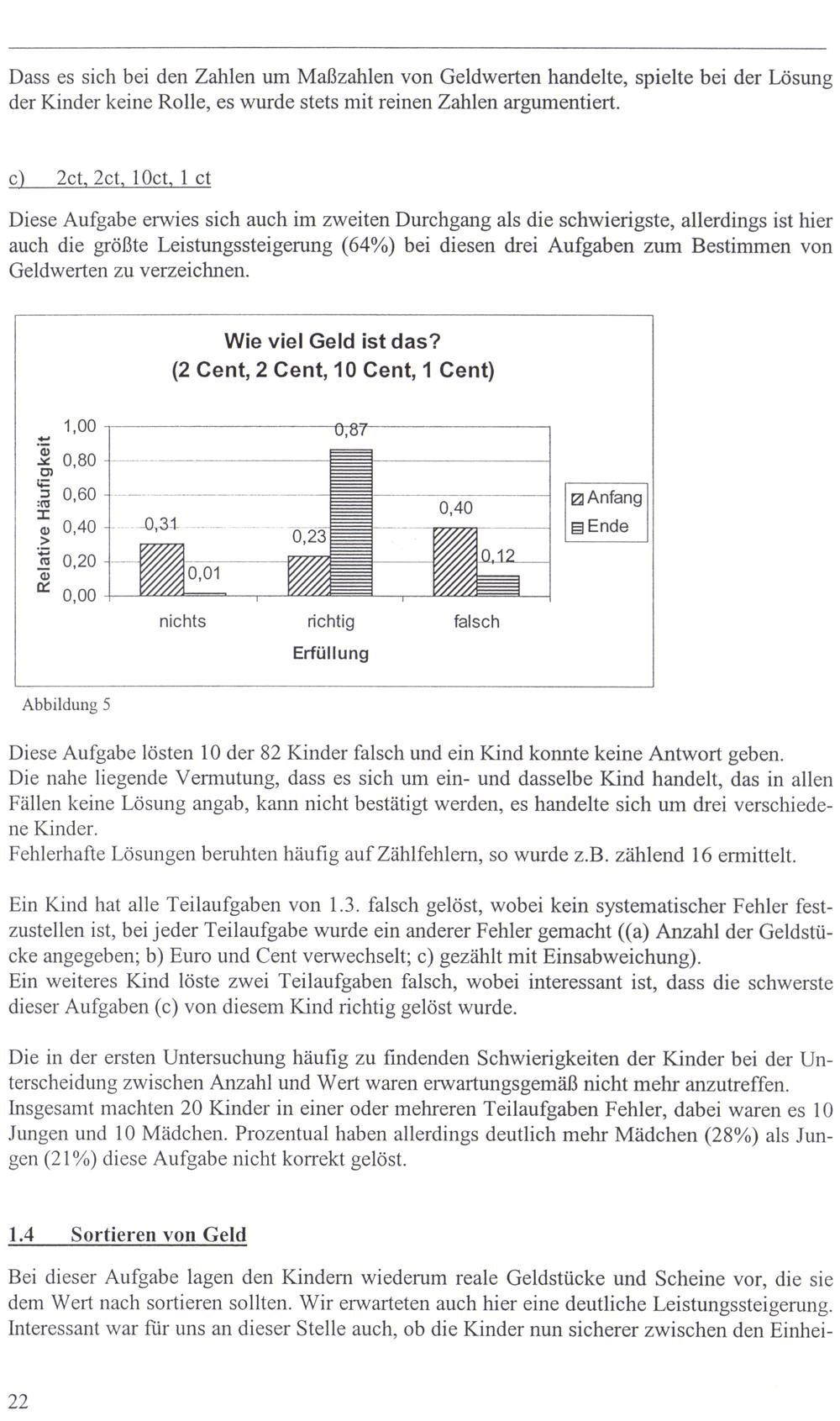 Diese Aufgabe erwies sich auch ım zweiten Durchgang als die schwierigste, allerdings ist hier auch die größte Leistungssteigerung(64%) bei diesen drei Aufgaben zum Bestimmen von Geldwerten zu verzeichnen.