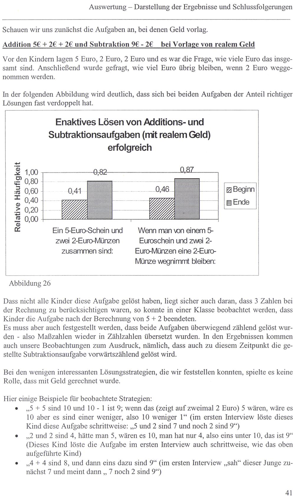 Enaktives Lösen von Additions- und Subtraktionsaufgaben(mit realem Geld) erfolgreich