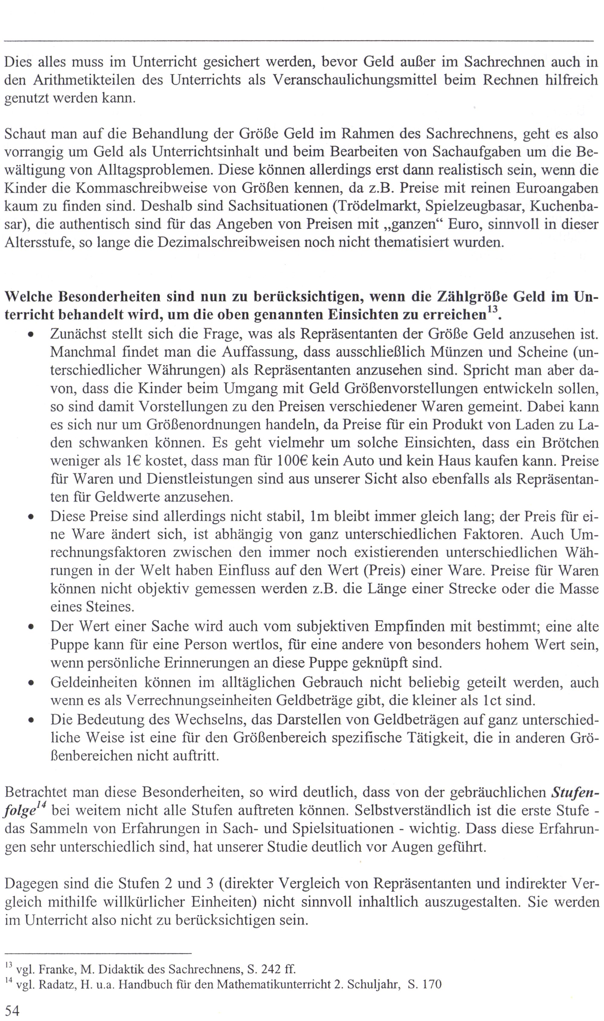 '* vgl. Franke, M. Didaktik des Sachrechnens, S. 242 ff. '* vgl. Radatz, H. u.a. Handbuch für den Mathematikunterricht 2. Schuljahr, S. 170