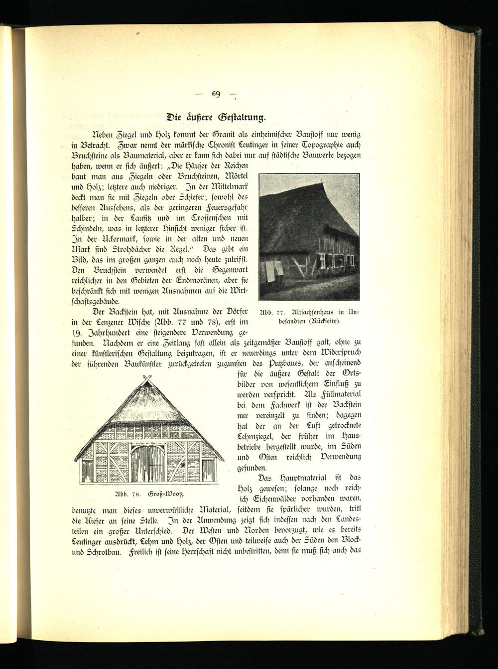 Der Backstein hat, mit Ausnahme der Dörfer Abb. 77 . Altsachsenhaus in Un- in der Lenzener Wische (Abb. 77 und 78), erst im besandten (Rückseite).