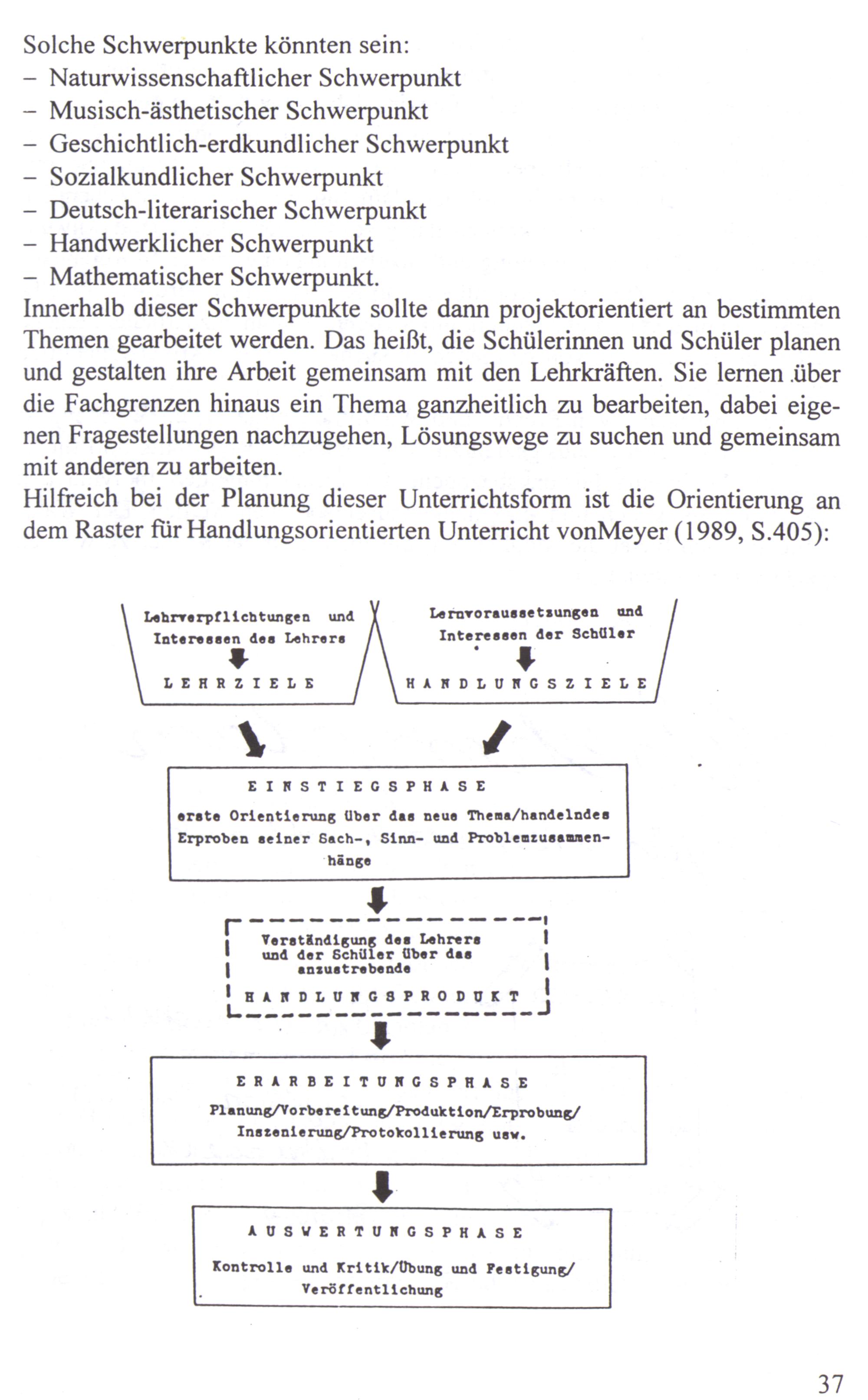 Hilfreich bei der Planung dieser Unterrichtsform ist die Orientierung an dem Raster für Handlungsorientierten Unterricht vonMeyer(1989, S.405):