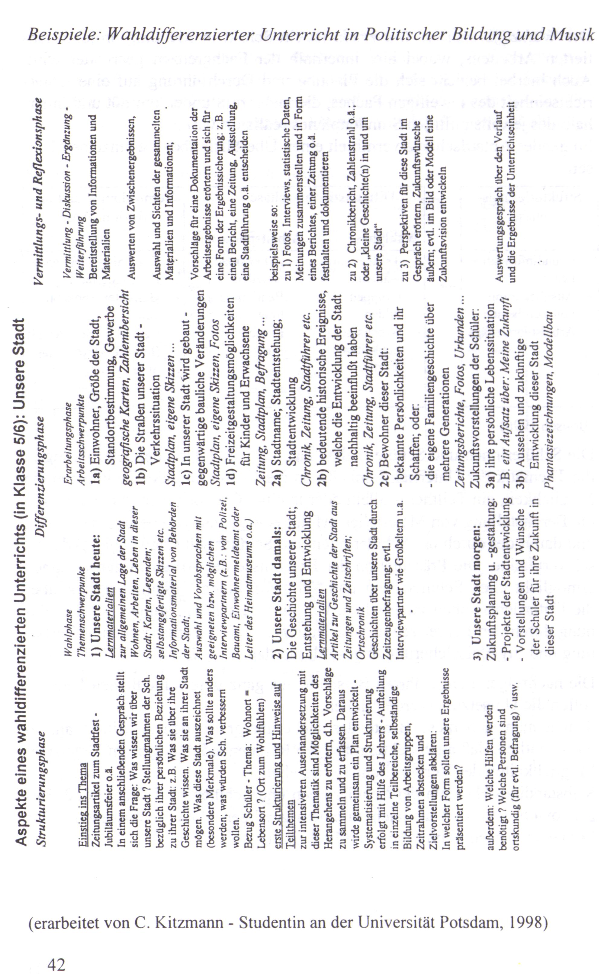 Aspekte eines wahldifferenzierten Unterrichts(in Klasse 5/6): Unsere Stadt