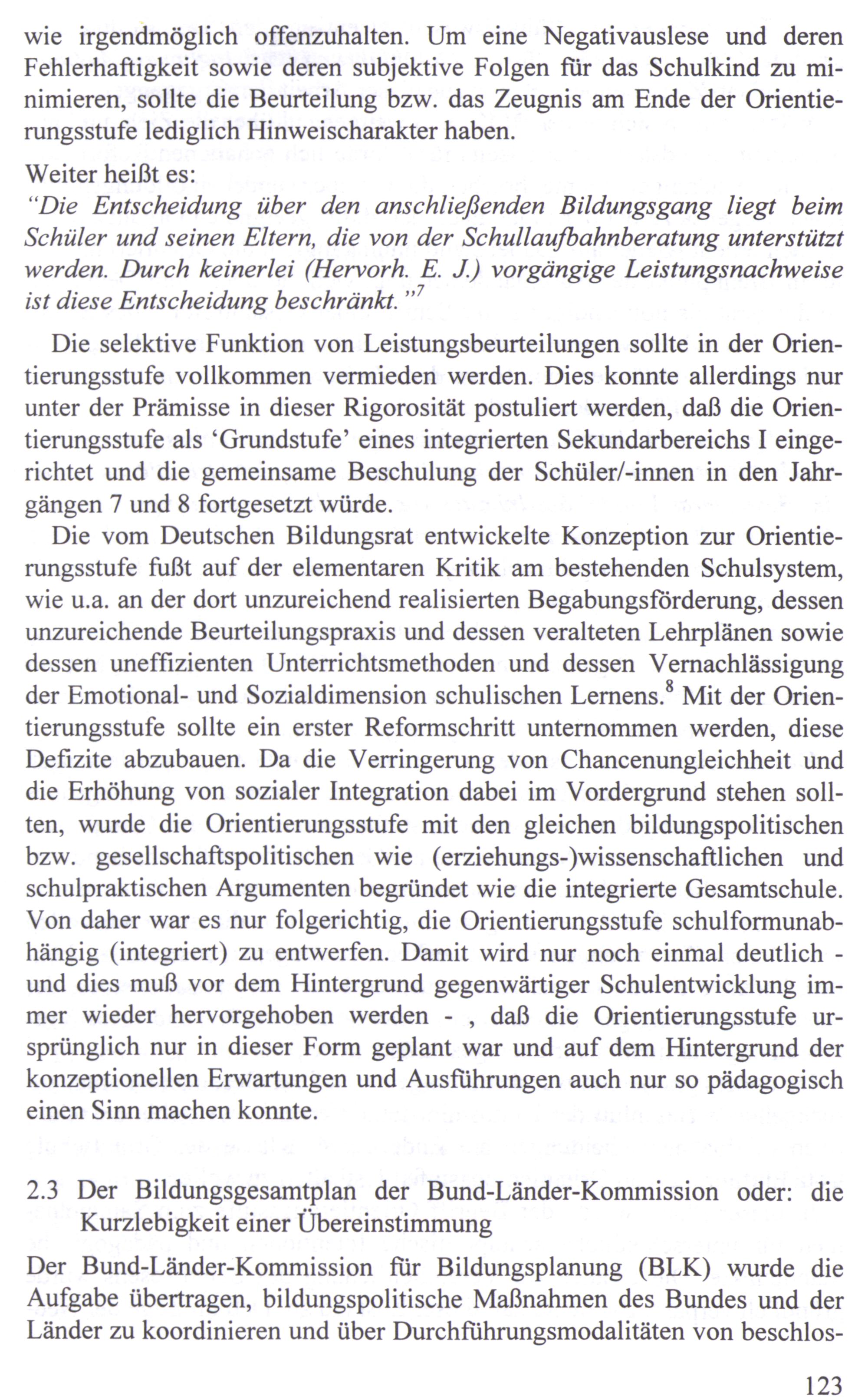 “Die Entscheidung über den anschließenden Bildungsgang liegt beim Schüler und seinen Eltern, die von der Schullaufbahnberatung unterstützt werden. Durch keinerlei(Hervorh. E. J.) vorgängige Leistungsnachweise ist diese Entscheidung beschränkt.”
