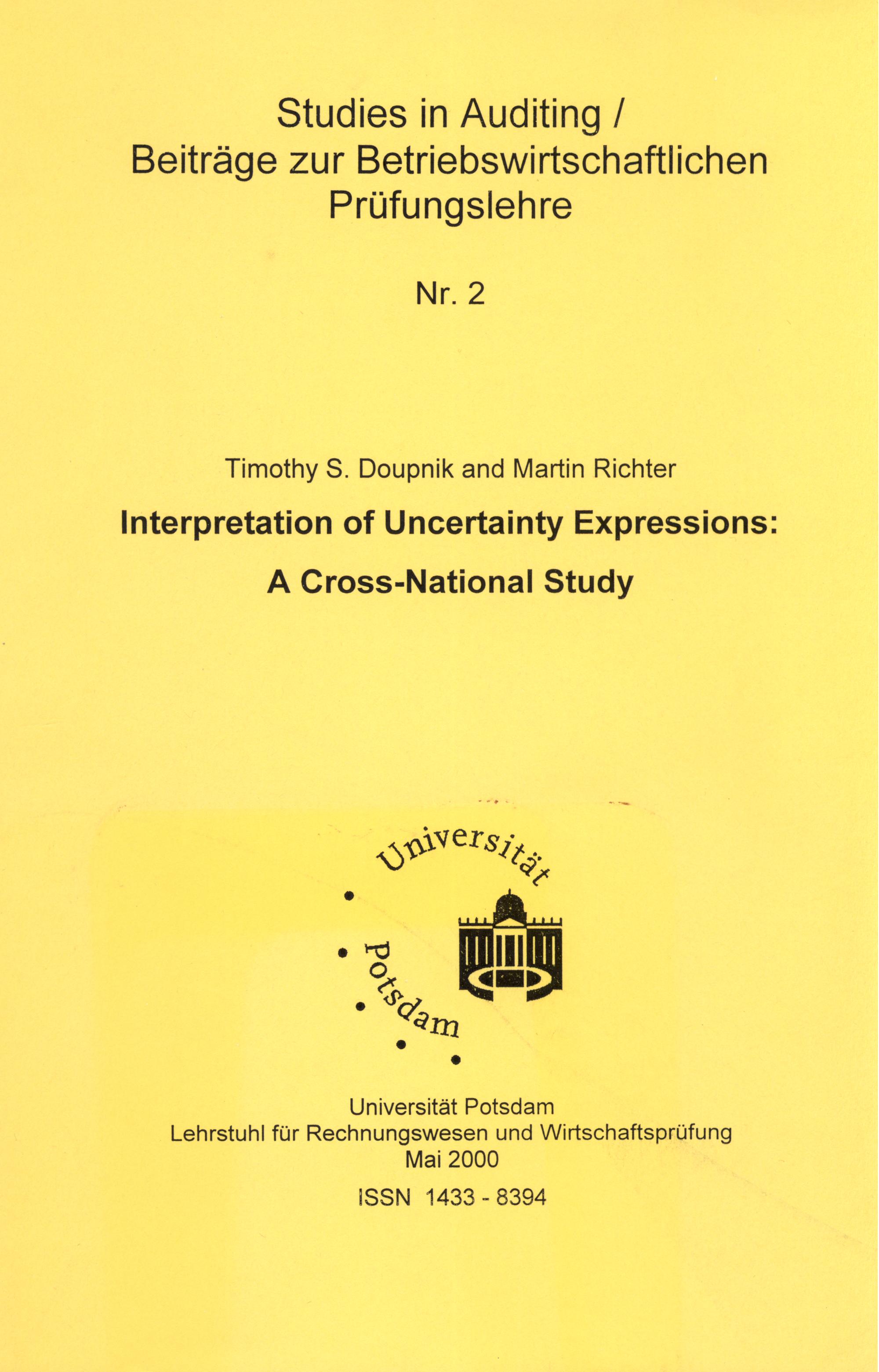 Timothy S. Doupnik and Martin Richter Interpretation of Uncertainty Expressions:
