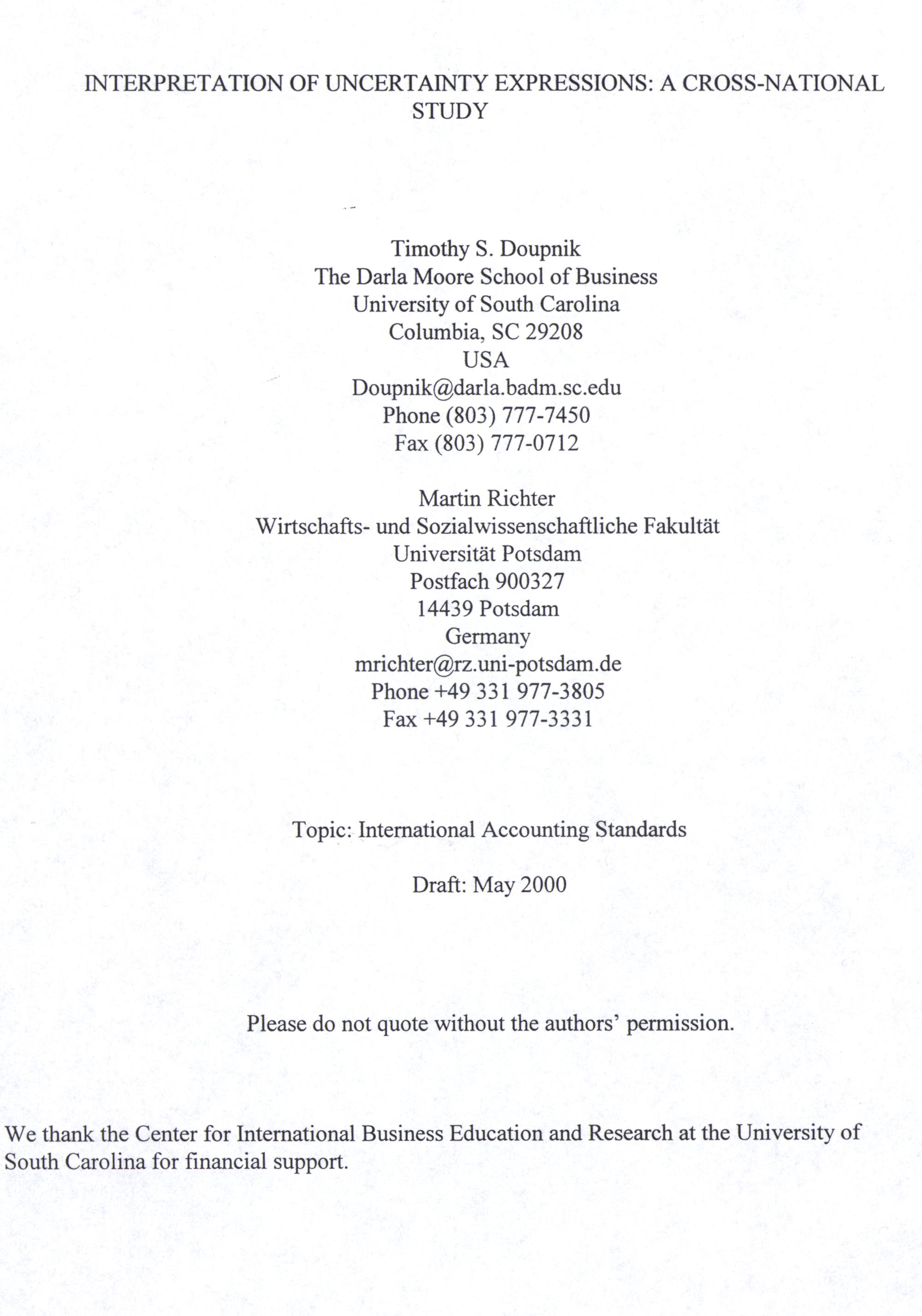 Timothy S. Doupnik The Darla Moore School of Business University of South Carolina Columbia, SC 29208 USA Doupnik@darla.badm.sc.edu Phone(803) 777-7450 Fax(803) 777-0712