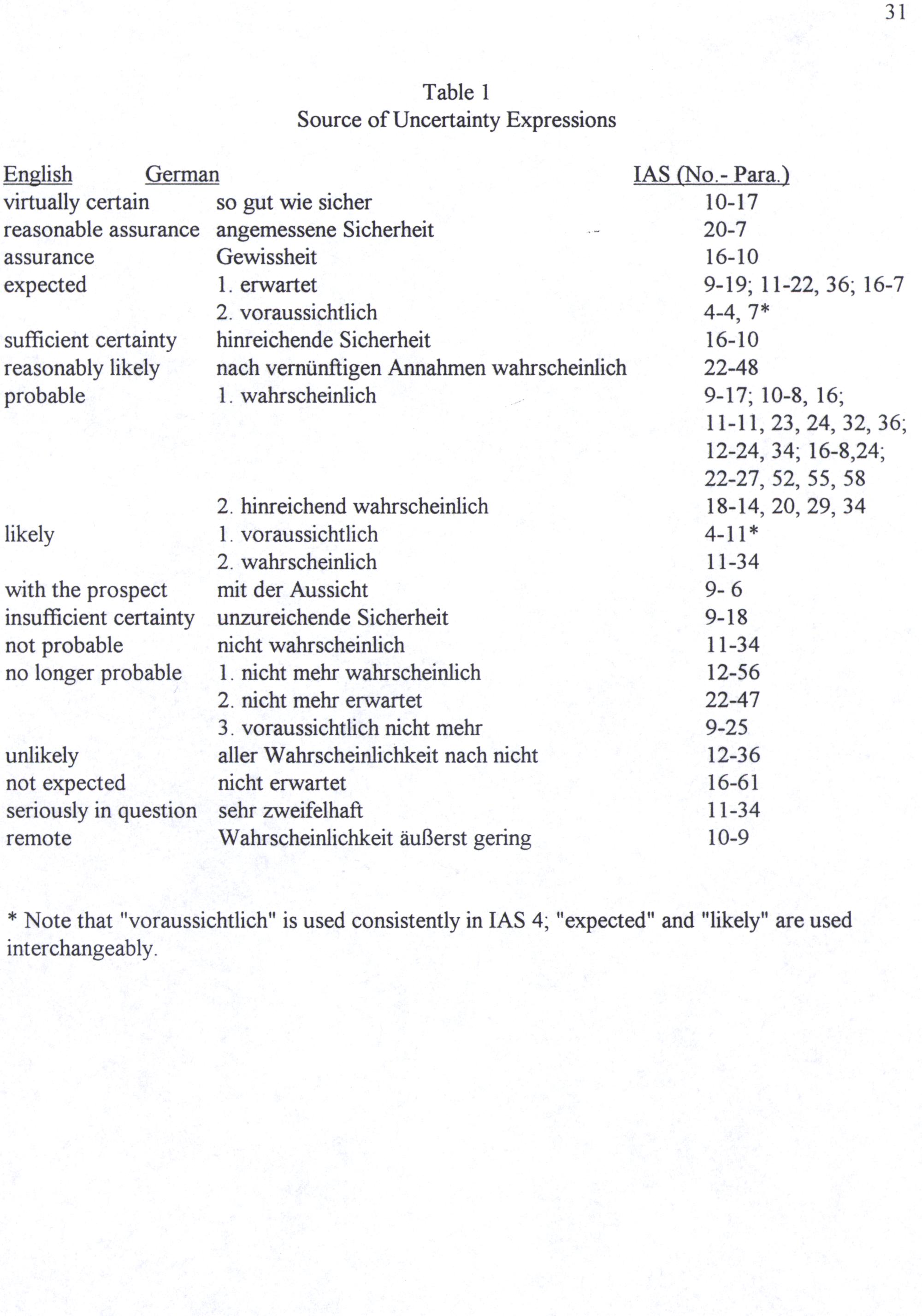 * Note that"voraussichtlich" is used consistently in IAS 4;"expected" and"likely" are used interchangeably.