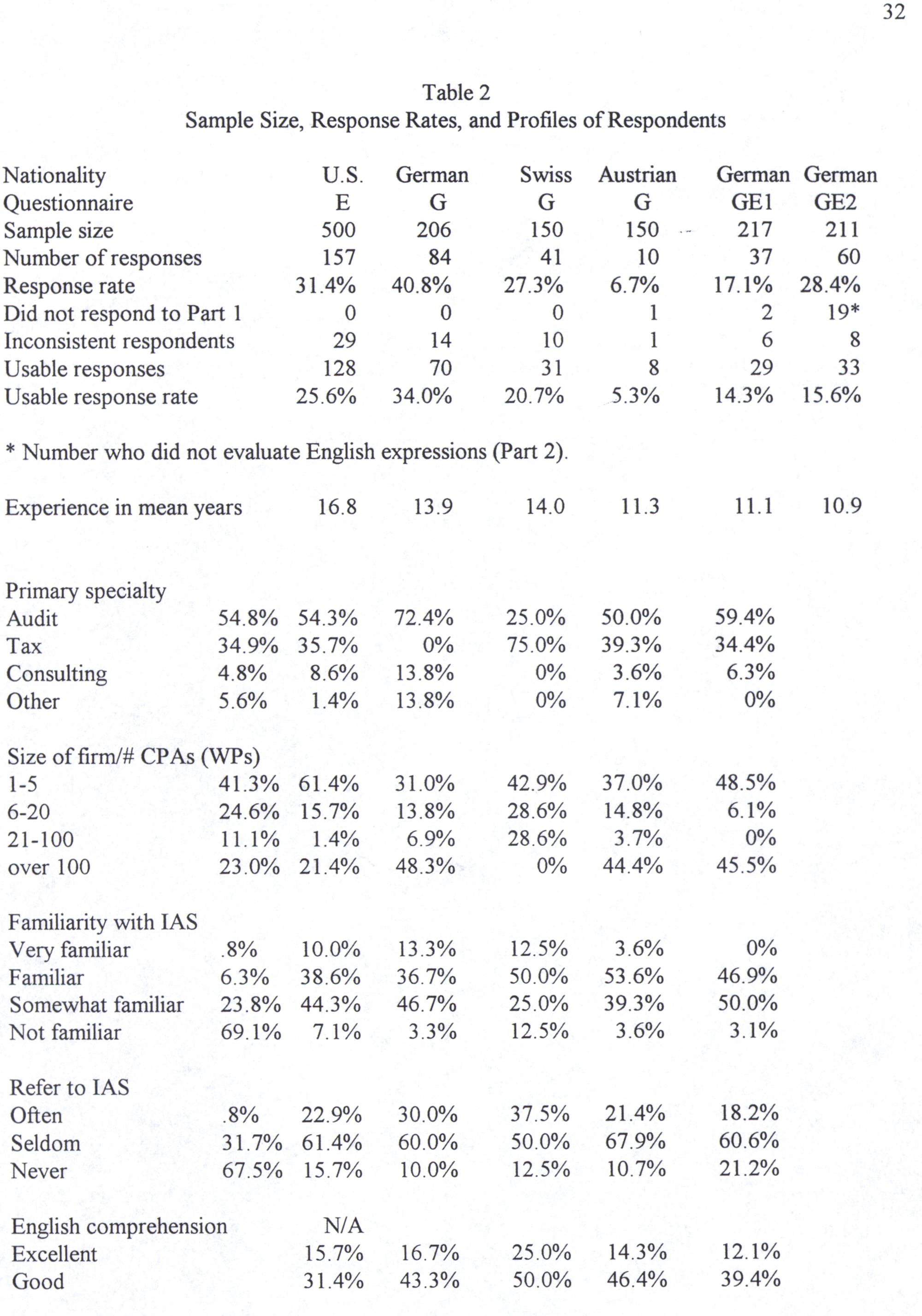 Audıt Tax Consulting Other Size of firm/# CPAs(WPs) Familiarıty with IAS