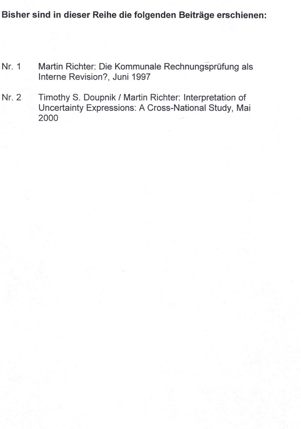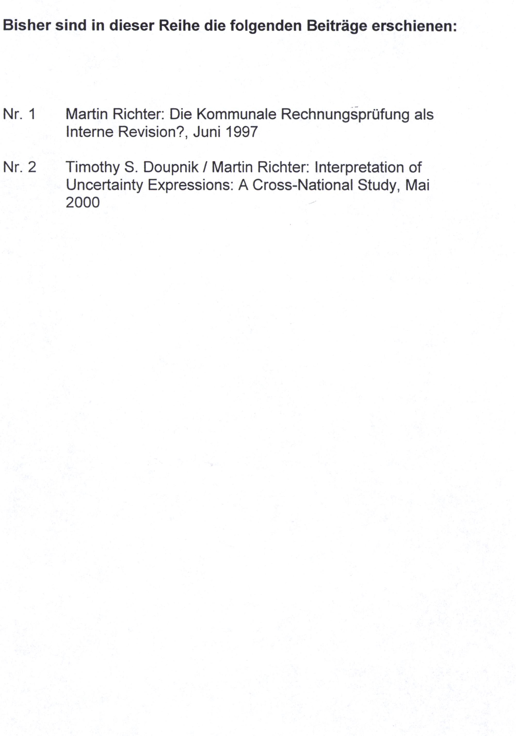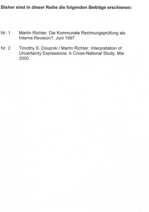 Nr. 2 Timothy S. Doupnik/ Martin Richter: Interpretation of Uncertainty Expressions: A Cross-National Study, Mai 2000