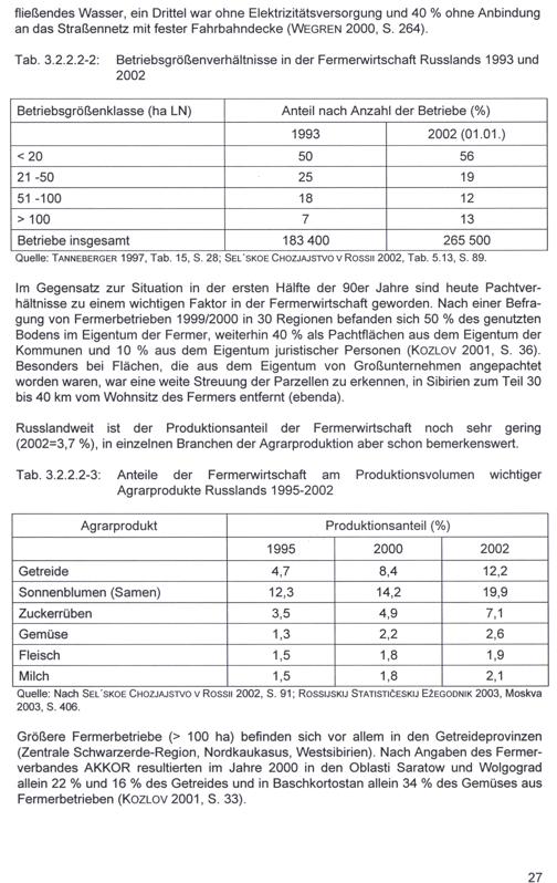 Quelle: TANNEBERGER 1997, Tab. 15, S. 28; SEL’SKOE CHOZJAJSTVO V Rossır 2002, Tab. 5.13, S. 89.