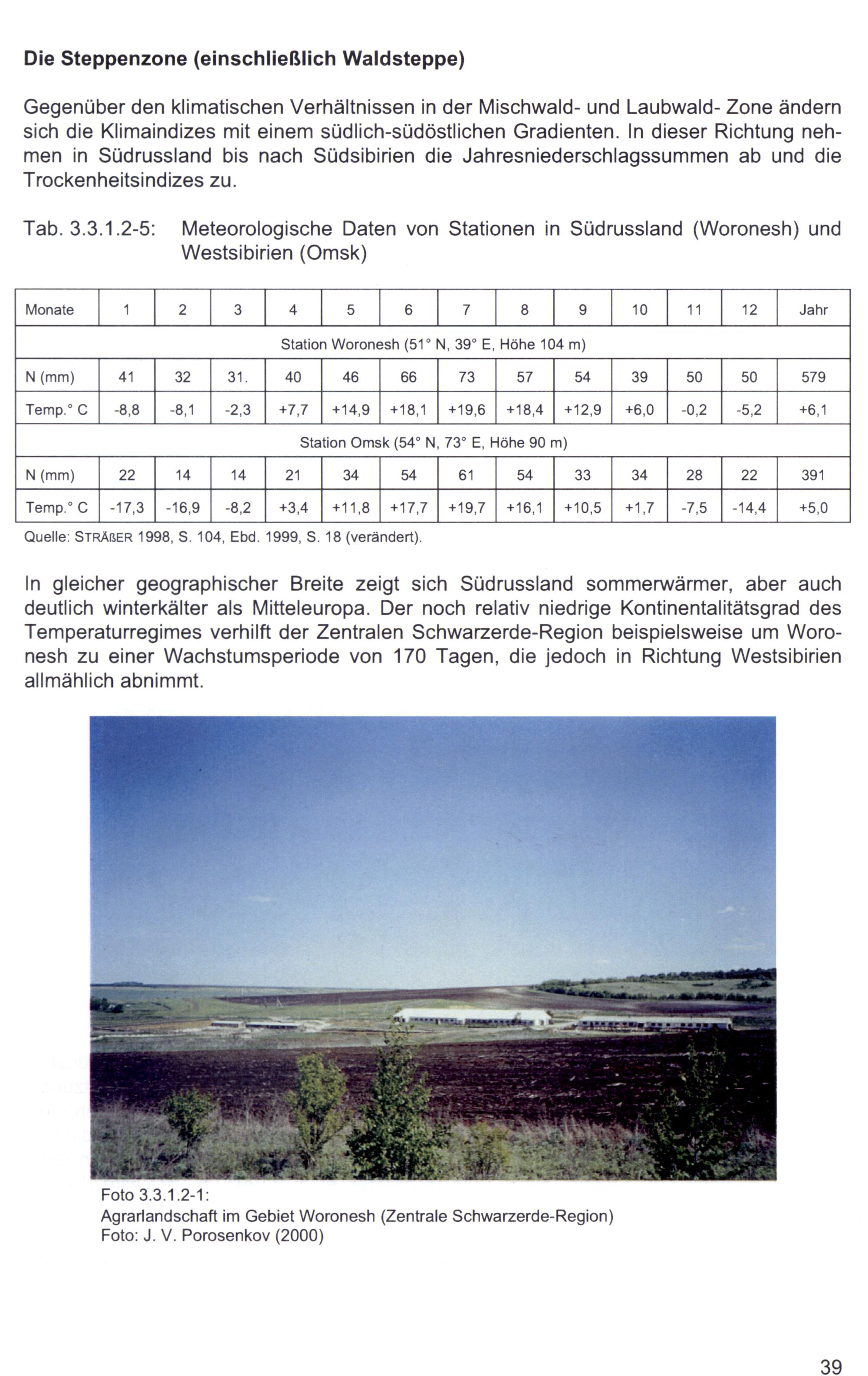 Tab. 3.3.1.2-5: Meteorologische Daten von Stationen in Südrussland(Woronesh) und Westsibirien(Omsk)