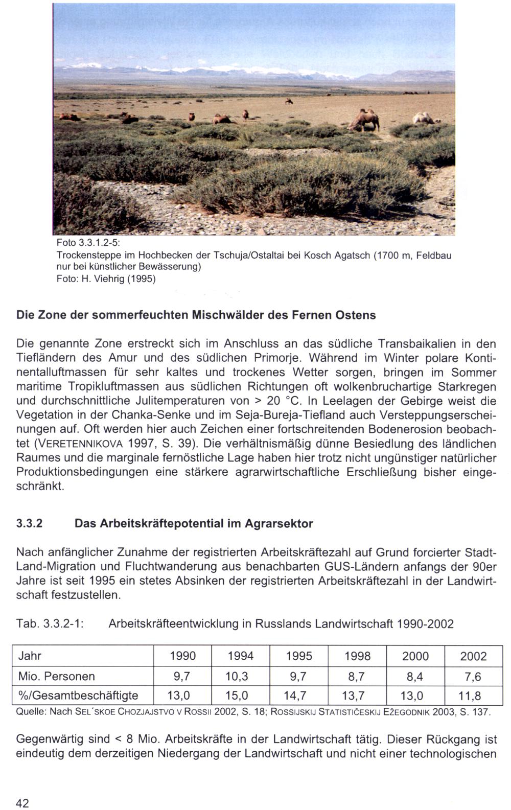 Tab. 3.3.2-1: Arbeitskräfteentwicklung in Russlands Landwirtschaft 1990-2002