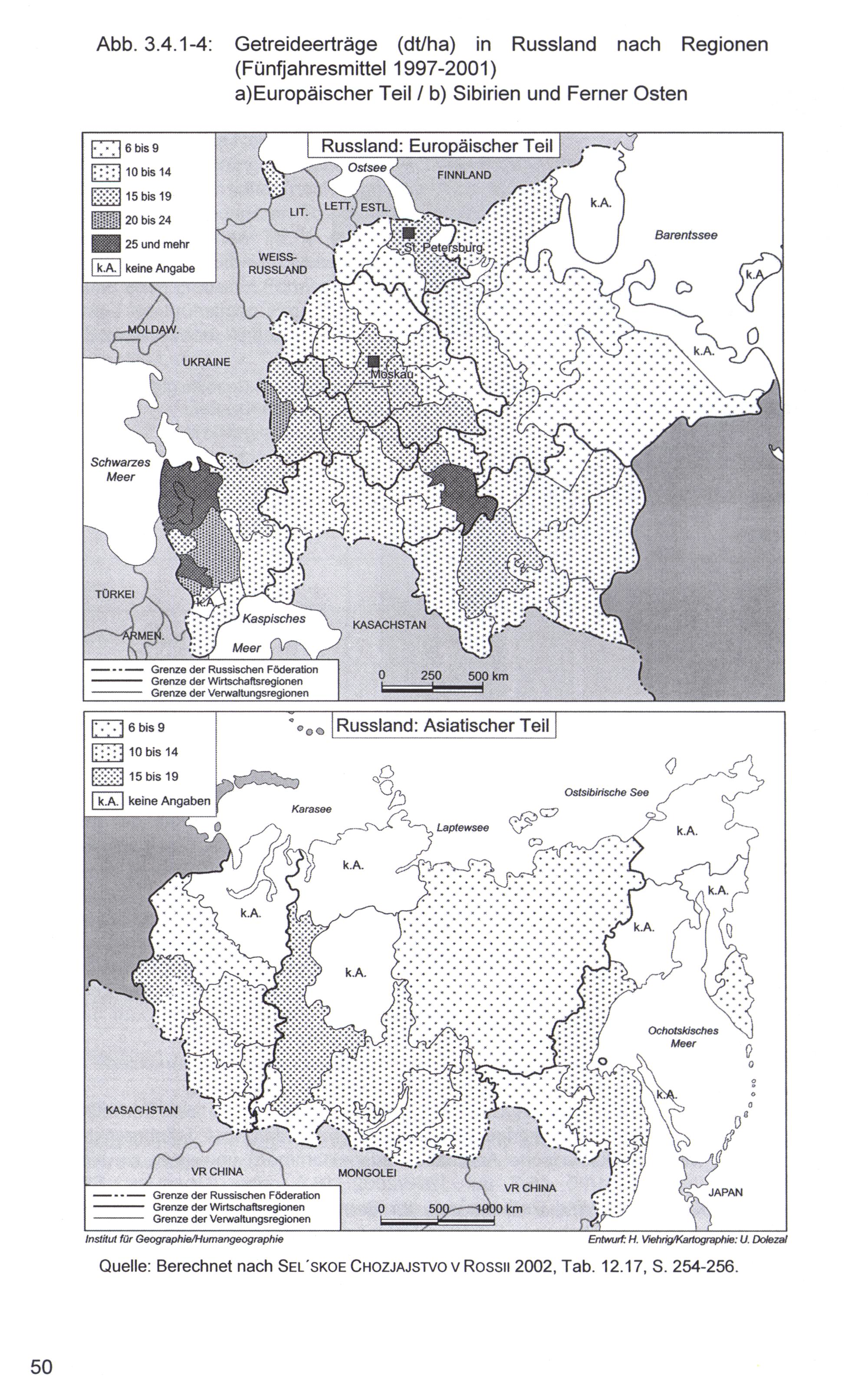 Institut für Geographie/Humangeographie Entwurf: H. Viehrig/Kartographie: U. Dolezal Quelle: Berechnet nach SEL’SKOE CHOZJAJSTVO V Rossır 2002, Tab. 12.17, S. 254-256.