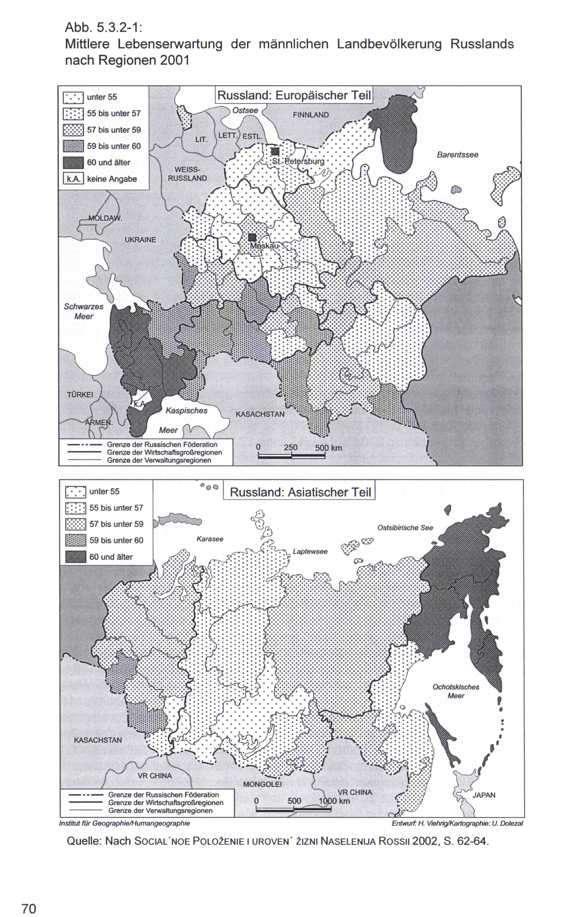 Quelle: Nach SOCIAL’NOE POLOZENIE| UROVEN’ ZIZNI NASELENIJA RossıLr 2002, S. 62-64.