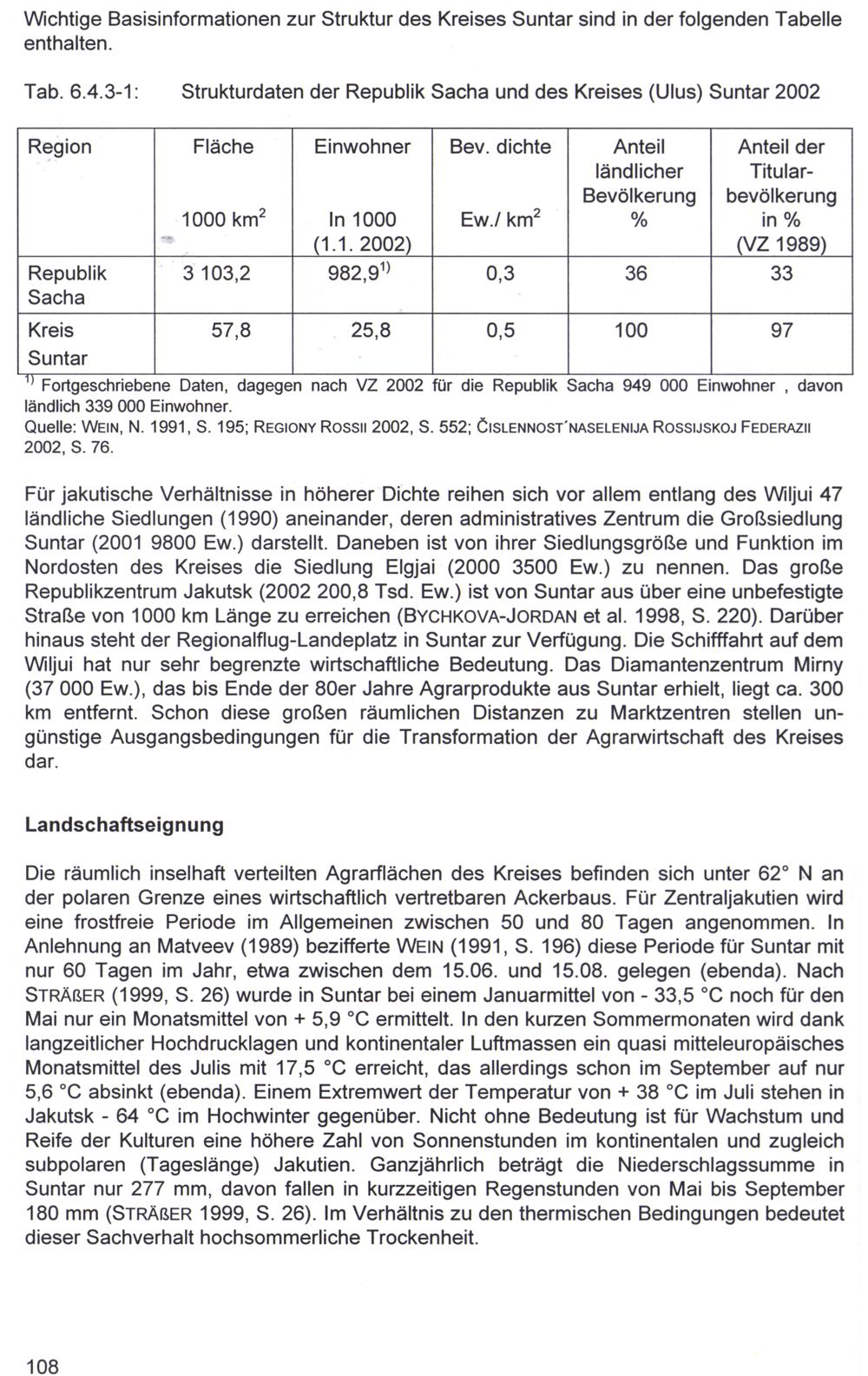Tab. 6.4.3-1: Strukturdaten der Republik Sacha und des Kreises(Ulus) Suntar 2002