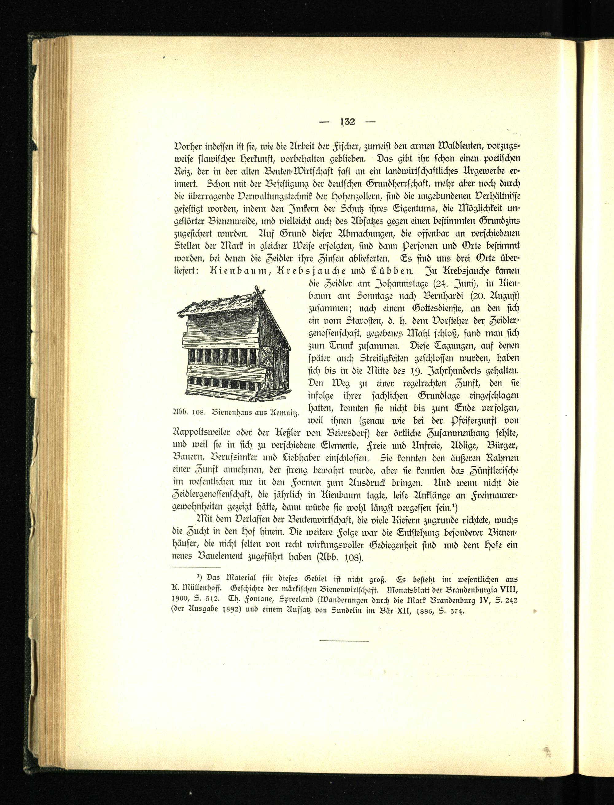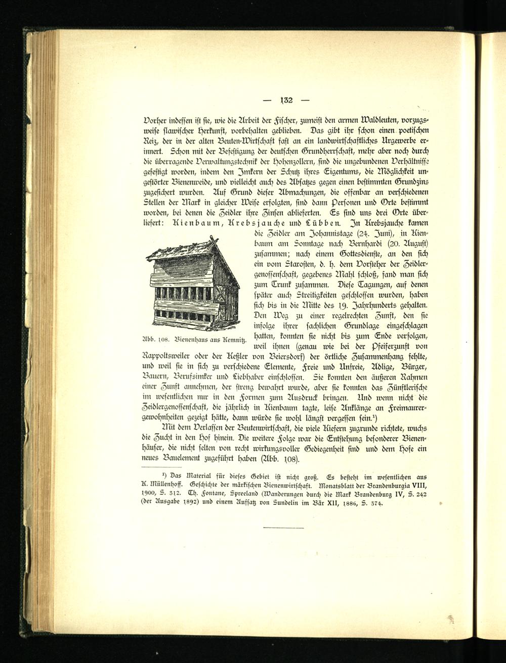 ? Das Material für dieses Gebiet ist nicht groß. Es besteht im wesentlichen aus K. Müllenhoff. Geschichte der märkischen Bienenwirtschaft. Monatsblatt der Brandenburgia VIII, tgoo, 5 . Th- Fontane, Sxreeland (Wanderungen durch die Mark Brandenburg IV, 5 . 242 (der Ausgabe 4892) und einem Aufsatz von Zundelin im Bär XII, Z 88 S, S. 374.