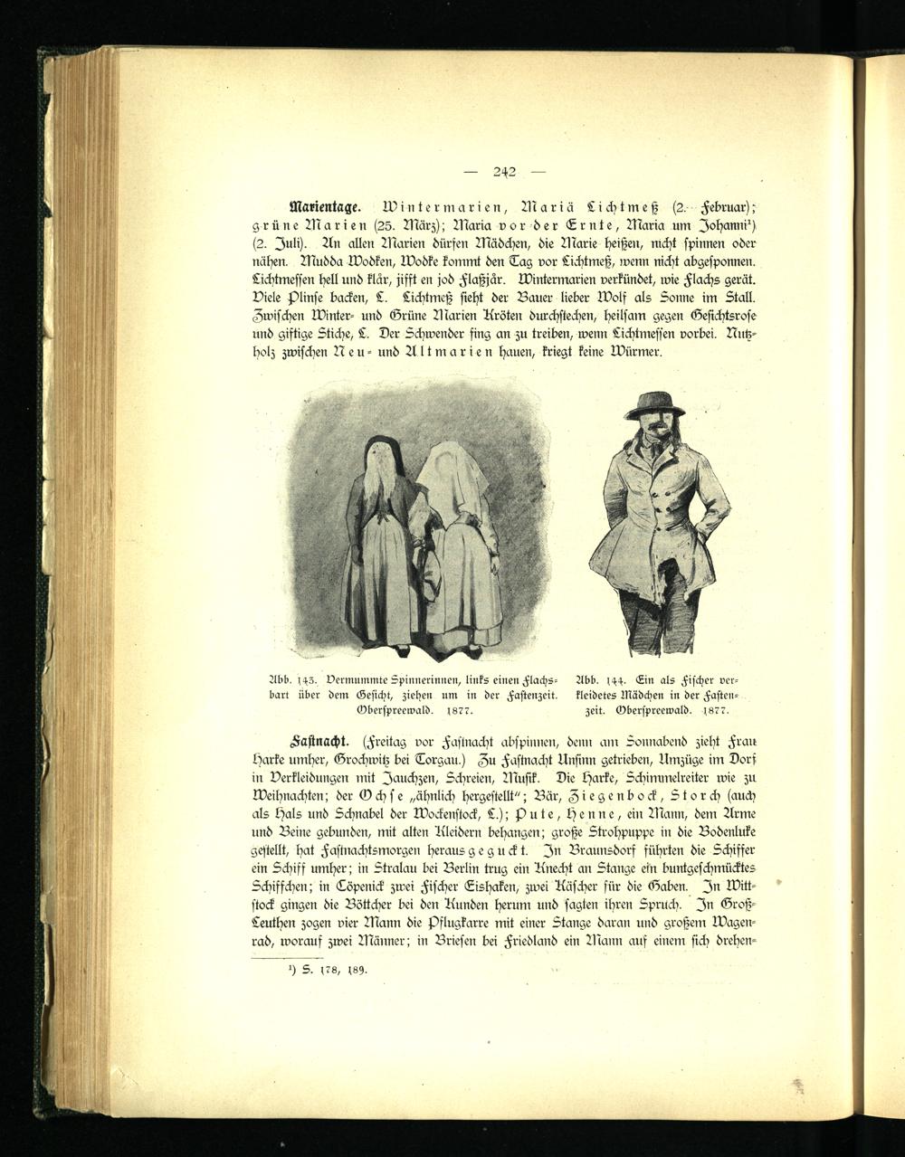 Abb. i HS. Vermummte Spinnerinnen, links einen Flachs- Abb. tHH. Lin als Fischer verbart über dem Gesicht, ziehen um in der Fastenzeit. kleidetes Mädchen in der Fasten-