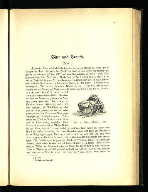 Zahlreiche Litten und Gebräuche schließen sich an die Geburt an, ebenso wie an Hochzeit und Tod. Sie haben den Zweck, das Kind in jeder Weise vor Unglück und Fehlern zu bewahren und ihm Glück und gute Eigenschaften zu sichern. Auch Weissagungen finden statt. Die B i l e n, B ü l e k e n holt der K n appe n ä r , oder Hain- otter (Dörfer bei Lenzen a. E., havelberg) aus den, Wasser und wirft sie in den Schornstein ; auch die Bademutter fischt sie im Wasser, L. Die Stunde der Geburt ist bedeutungsvoll. Dieklugen Frauen, Wehmütter, Z ü st heba m m e n weis- sagten^) aus den Sternen und Anzeichen des Himmels das Schicksal des Kindes. Sonntagskinder sind Glückspilze und sehen alles, namentlich die Geister. Besonders ein Kind am Donnerstag geboren und Sonntags getauft, sieht alles. Den Helm, die Kinderkrone, Glückshaube, soll man aufheben; die Nabelschnur zerrieben oder zu Asche gebrannt an den drei ersten Feiertagen der sechs Wochen dem Kinde gegen Krämpfe und Krankheit eingeben. Waschwasser von Wochenkindern unter Zaun oder an Scheidung ausgießen. Beim N e u g e b o r e n e n soll die Mutter bleiben bis zur Taufe, daß die Unnaärdschen nicht das Kind stehlen und gegen einen Wechselbalg vertauschen, oder vorm Weggehen segnen und beten, ein Gesangbuch in die Wiege legen; gegen Anheren und Berufen Salz und Dill, auch einen K r ö t e n ste i n , K r ö t e n k r o n e?) Zn der Nacht am Wochenbett stets Licht brennen lassen. Bei s)echüle legten sie gegen den Nickert Mrant, blauen Dost, schwarze» Kümmel, einen rechten Hemdsärmel und linken Strumpf in die Wiege. Sechs Wochen muß die Wäsche vor Sonnenuntergang ins Haus, der Mond darf sie nicht bescheinen. Wenn die Mutter, die ein Kind erwartet, erschrickt und faßt sich irgendwo hin, bekommt das Kind da ein Muttermal, vor Feuer ein Feuer mal, vorm Hasen eine