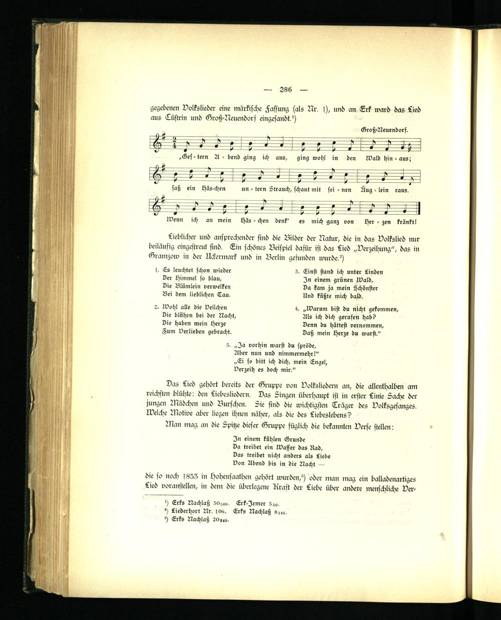 Lieblicher und ansprechender sind die Bilder der Natur, die in das Volkslied nur beiläufig eingestreut sind. Lin schönes Beispiel dafür ist das Lied „Verzeihung", das in Gramzow in der Uckermark und in Berlin gefunden wurde?)