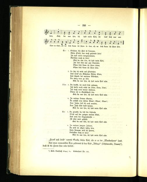 , „Frank ruld frech" nannte Goethe dieses §ied, als er es im „Ulunderhorn" fand. Ans einen verwandten Ton gestimmt ist das Tied „Absage" (Lchönwalde, Nauen)'), doch ist die Form hier rein lyrisch :