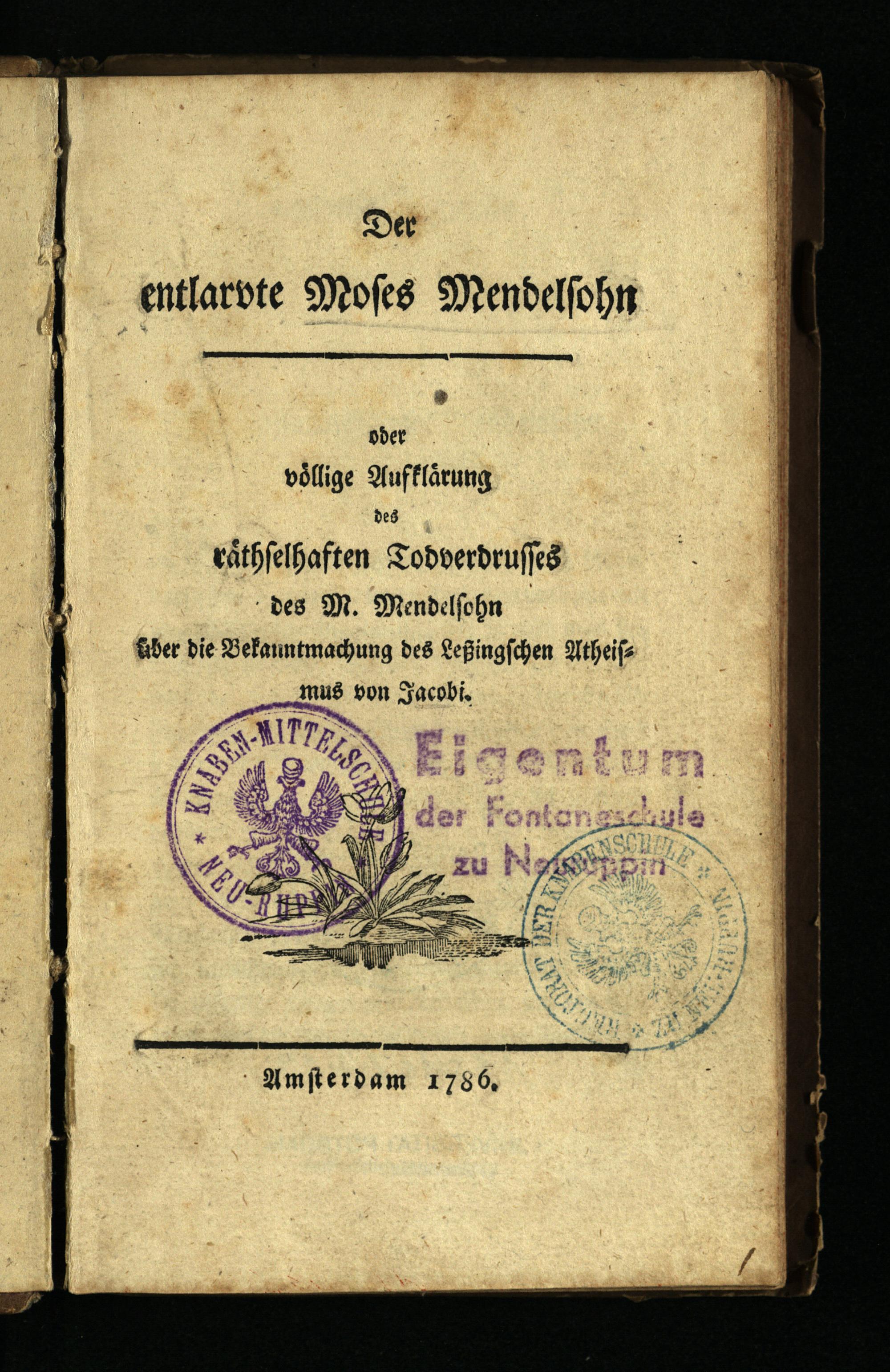 * oder völlige Aufklaͤrung des raͤthſelhaften Todverdruſſes des M. Mendelſohn Über die Bekanntmachung des Leßingſchen Atheiſ