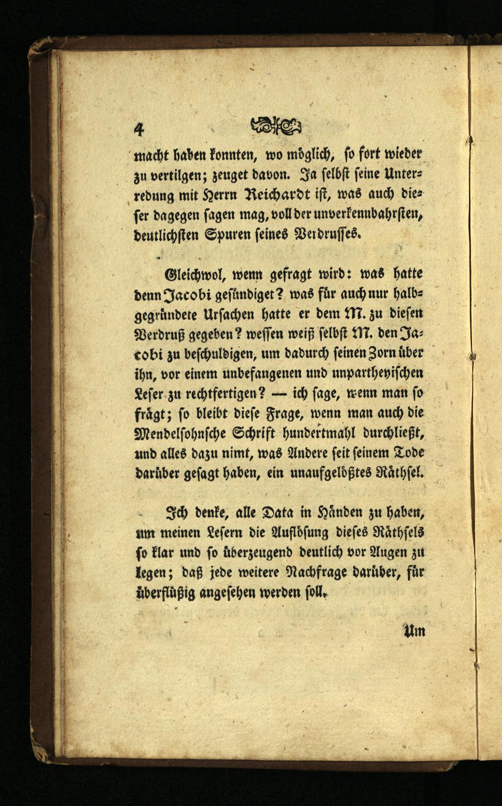 Gleichwol, wenn gefragt wird: was hatte denn Jacobi geſündiget? was für auch nur halbgegruͤndete Urſachen hatte er dem M. zu dieſen Verdruß gegeben? weſſen weiß ſelbſt M. den Jacobi zu beſchuldigen, um dadurch ſeinen Zorn uͤber ihn, vor einem unbefangenen und unpartheyiſchen
