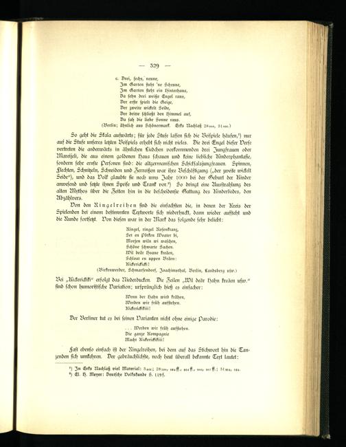 Fast ebenso einfach ist der Ringelreihen, bei dein auf das Stichwort hin die Tanzenden sich umkehren. Der gebräuchlichste, noch heut überall bekannte Text lalltet: