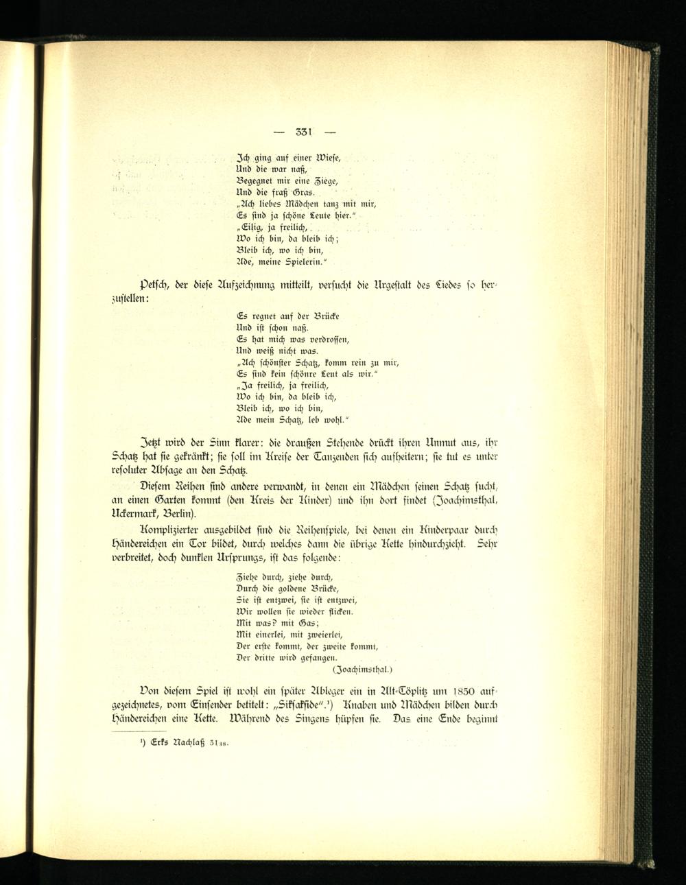 Diesem Reihen sind andere verwandt, in denen ein ANdchen seinen Schatz sucht, an einen Garten komint (den Kreis der Kinder) und ihn dort findet ("joachimsthal, Ackermark, Berlin).