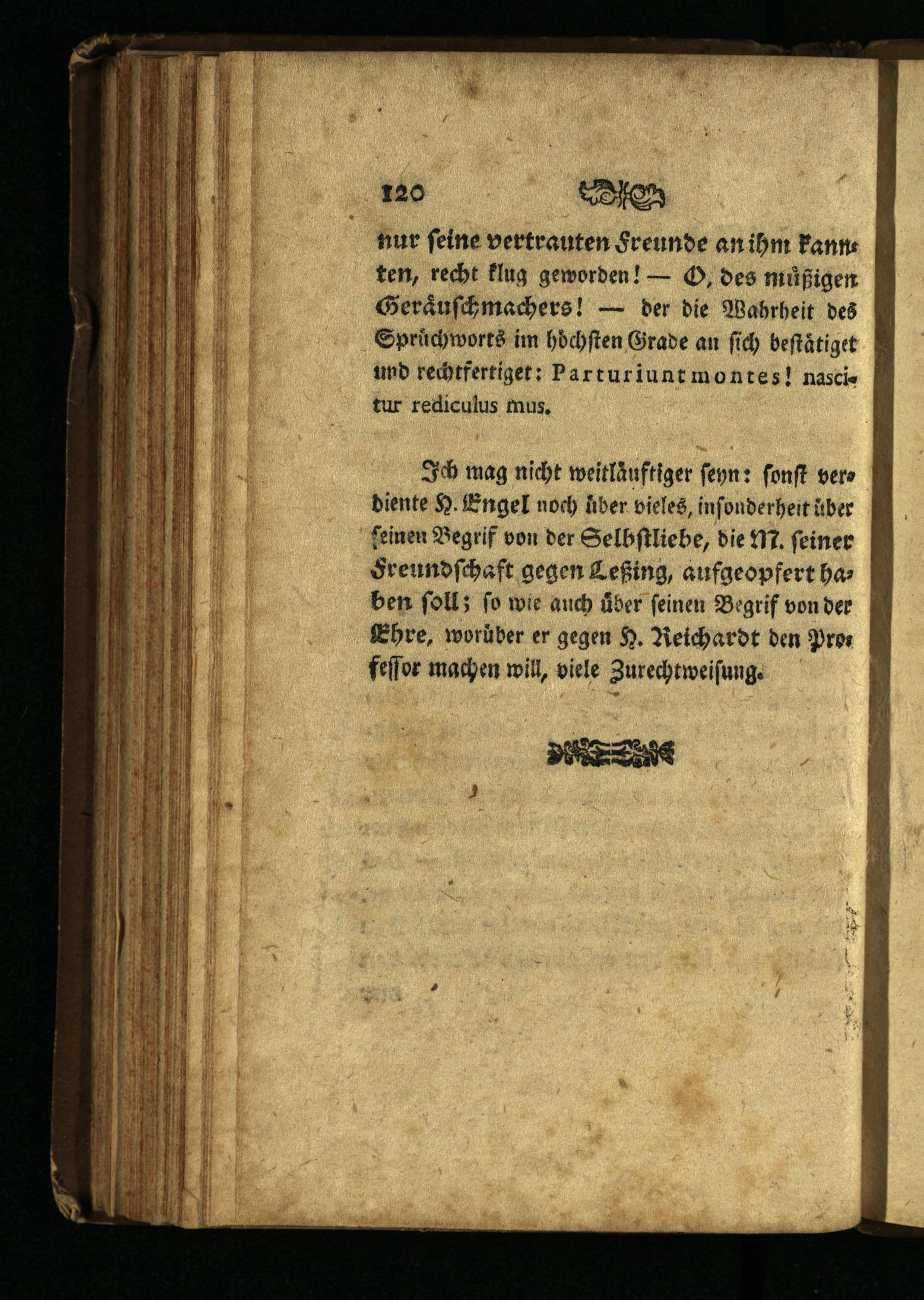 Ich mag nicht weitlaäͤuftiger ſeyn: ſonſt vers diente H. Engel noch ber vieles, inſonderheit über feinen Begrif von der Selbſtliebe, die NT. feiner Freundſchaft gegen Leßing, aufgeopfert haben ſoll; ſo wie auch uͤber ſeinen Begrif von der Ehre, worüber er gegen H. Reichardt den Pros