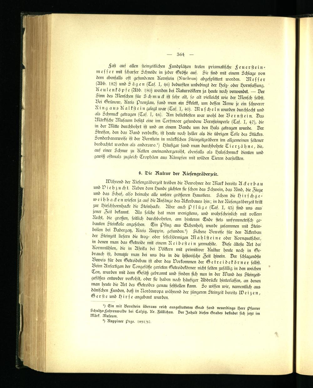 h Ein mit Bernstein überaus reich ausgestattetes Grab fand neuerdings Herr Pfarrer Zchultze-Fahrenwalde bei Lalzig, Kr. Züllichau. Der Inhalt dieses Grabes befindet sich jetzt im Mark. Museum.