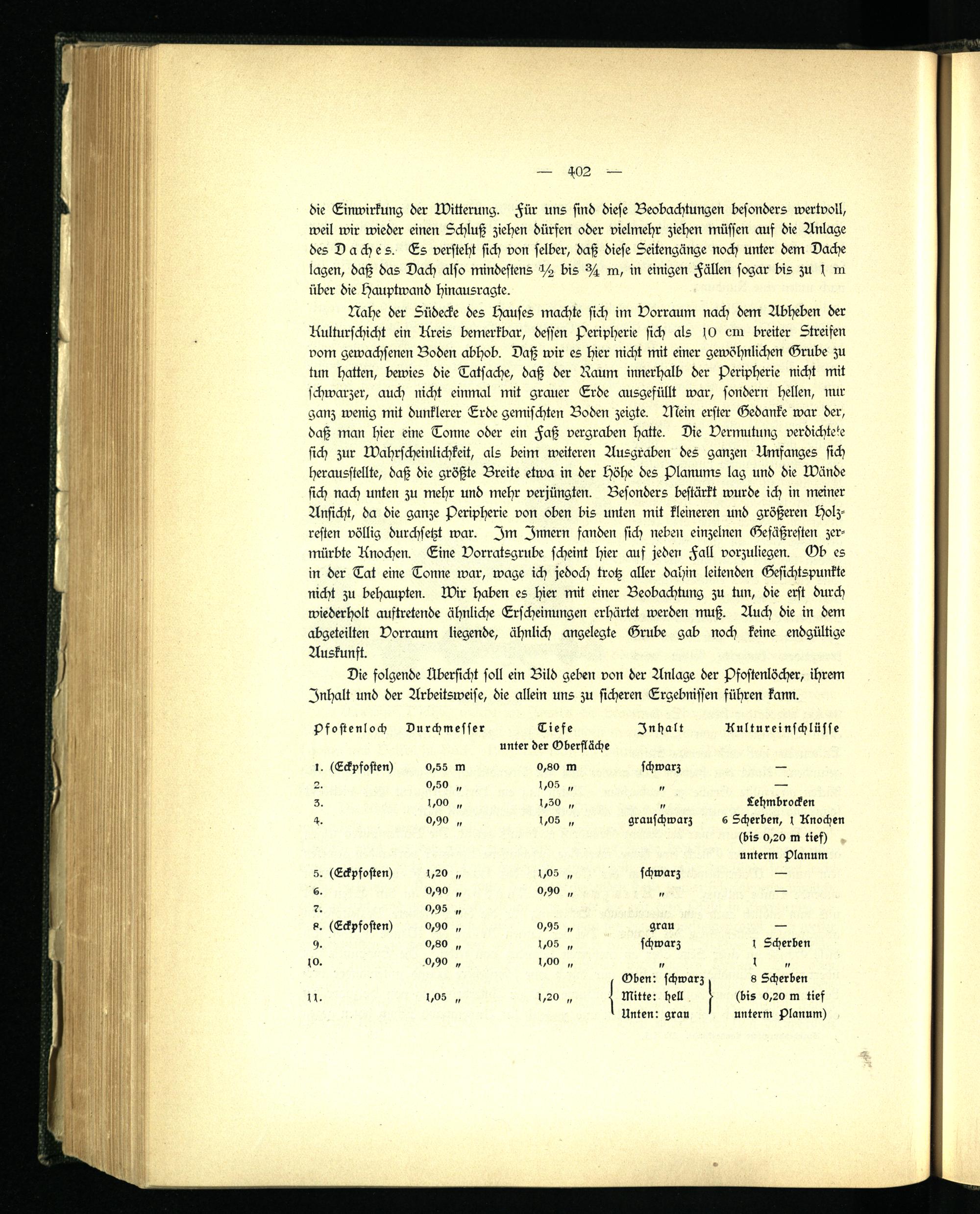 pfostenloch Durchmesser Tiefe Inhalt Aultureinschliisse