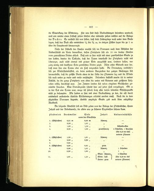 Die folgende Übersicht soll ein Bild geben von der Anlage der Pfostenlöcher, ihrem Inhalt und der Arbeitsweise, die allein uns zu sicheren Ergebnissen führen kann.
