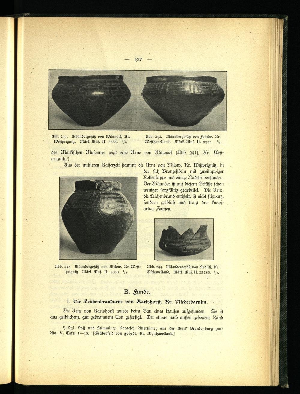 *) vgl. voß und Stimming: vorgesch. Altertümer aus der Mark Brandenburg 4887 Abt. V, Tafel 4—45. sGräberfeld von Fohrde, Ar. Westhavelland.s