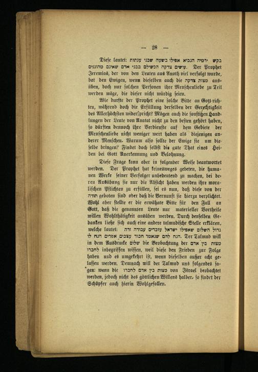 geboten sind oder daß die Vernunft sie hierzu verplichtet. Wohl aber stellte er die erwähnte Bitte für den Fall an Gott, daß die genannten Leute nur materieller Vortheile willen Wohlthätigkeit ausüben werden. Durch denselben Gedanken ließe sich auch eine andere talmudische Stelle erklären, welche lautet: