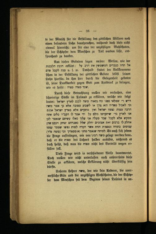 schon in der Erfüllung der göttlichen Gebote selbst seinen Lohn hierfür. da ihm hier durch die Gelegenheit geboten ist, seine Dankbarkeit gegen Gott zum Ausdruck zu bringen,
