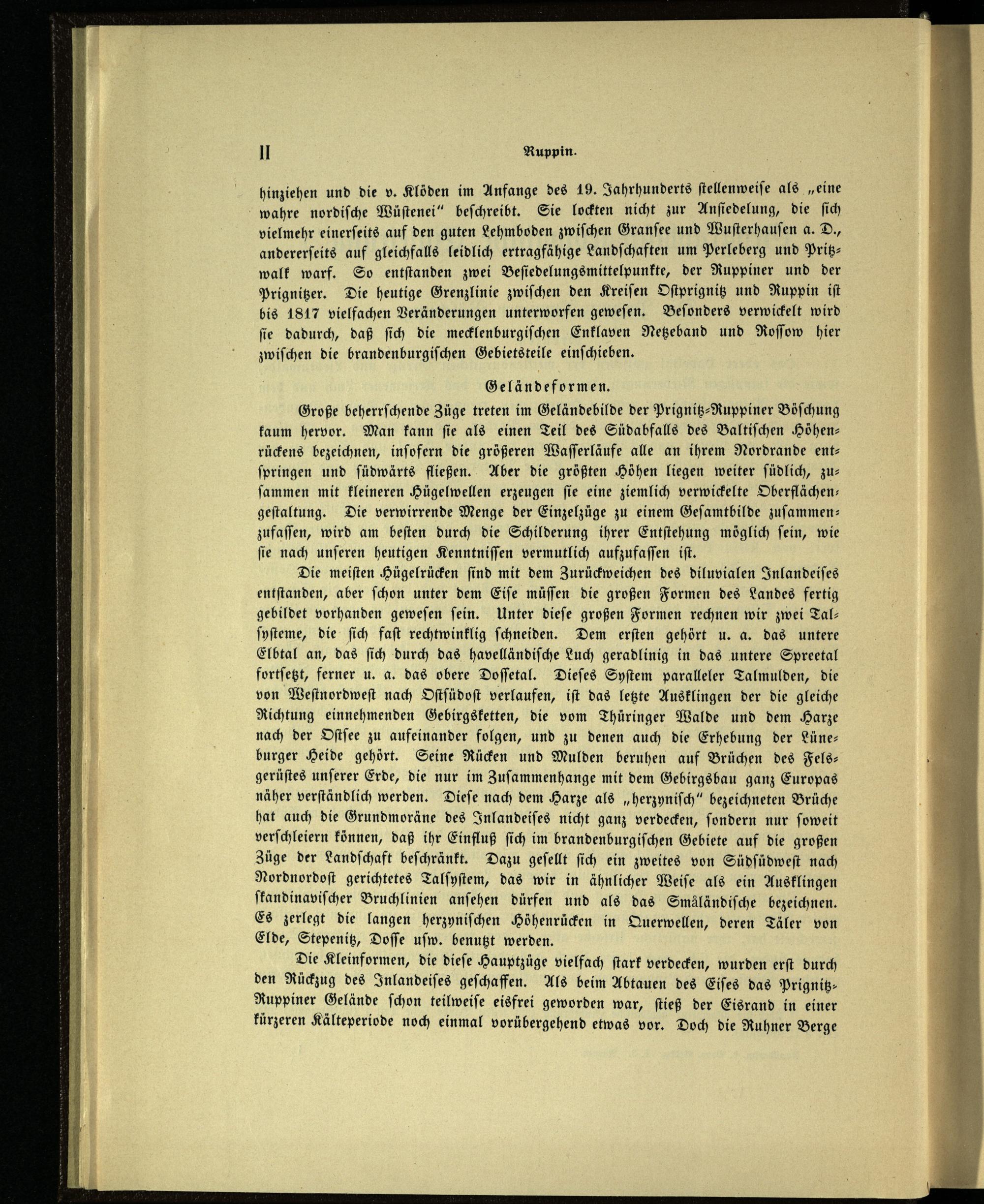 Die Kleinformen, die dieſe Hauptzüge vielfach ſtark verdecken, wurden erſt durch den Rückzug des Inlandeiſes geſchaffen. Als beim Abtauen des Eiſes das PrignitzRuppiner Gelände ſchon teilweiſe eisfrei geworden war, ſtieß der Eisrand in einer kürzeren Kälteperiode noch einmal vorübergehend etwas vor. Doch die Ruhner Berge