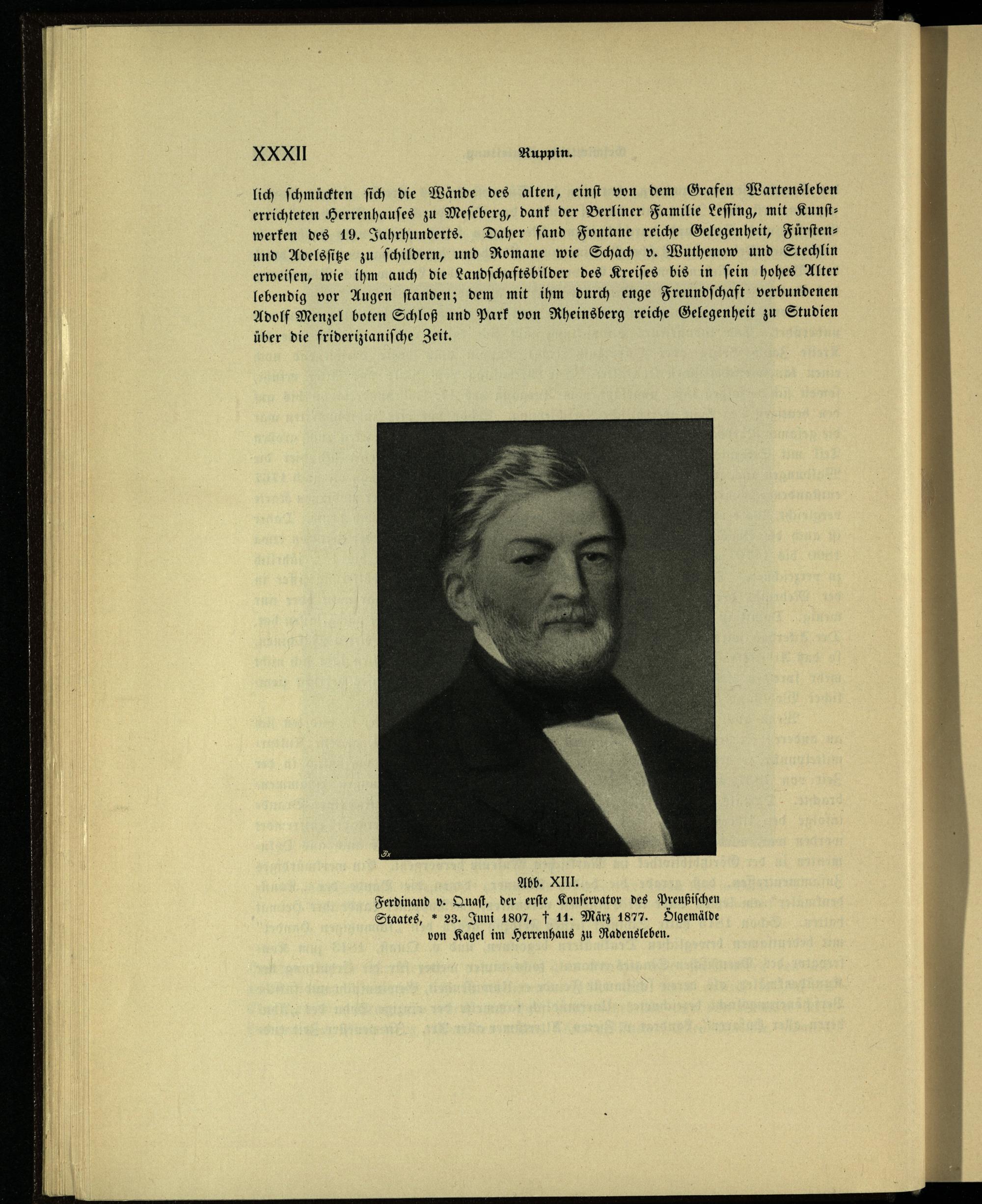 Abb. XIII. Ferdinand v. Quaſt, der erſte Konſervator des Preußiſchen Staates,“ 23. Juni 1807, F 11. März 1877. Ölgemälde von Kagel im Herrenhaus zu Radensleben.