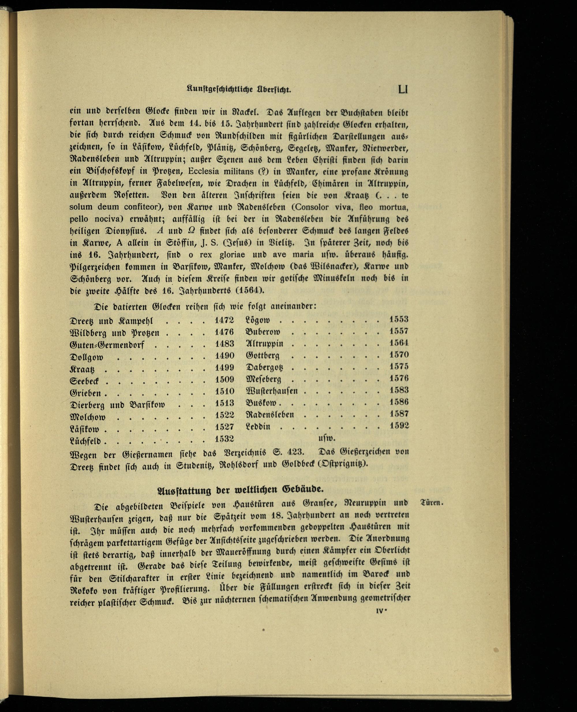 Wegen der Gießernamen ſiehe das Verzeichnis S. 423. Das Gießerzeichen von Dreetz findet ſich auch in Studenitz , Rohlsdorf und Goldbeck(Oſtprignitz )!.