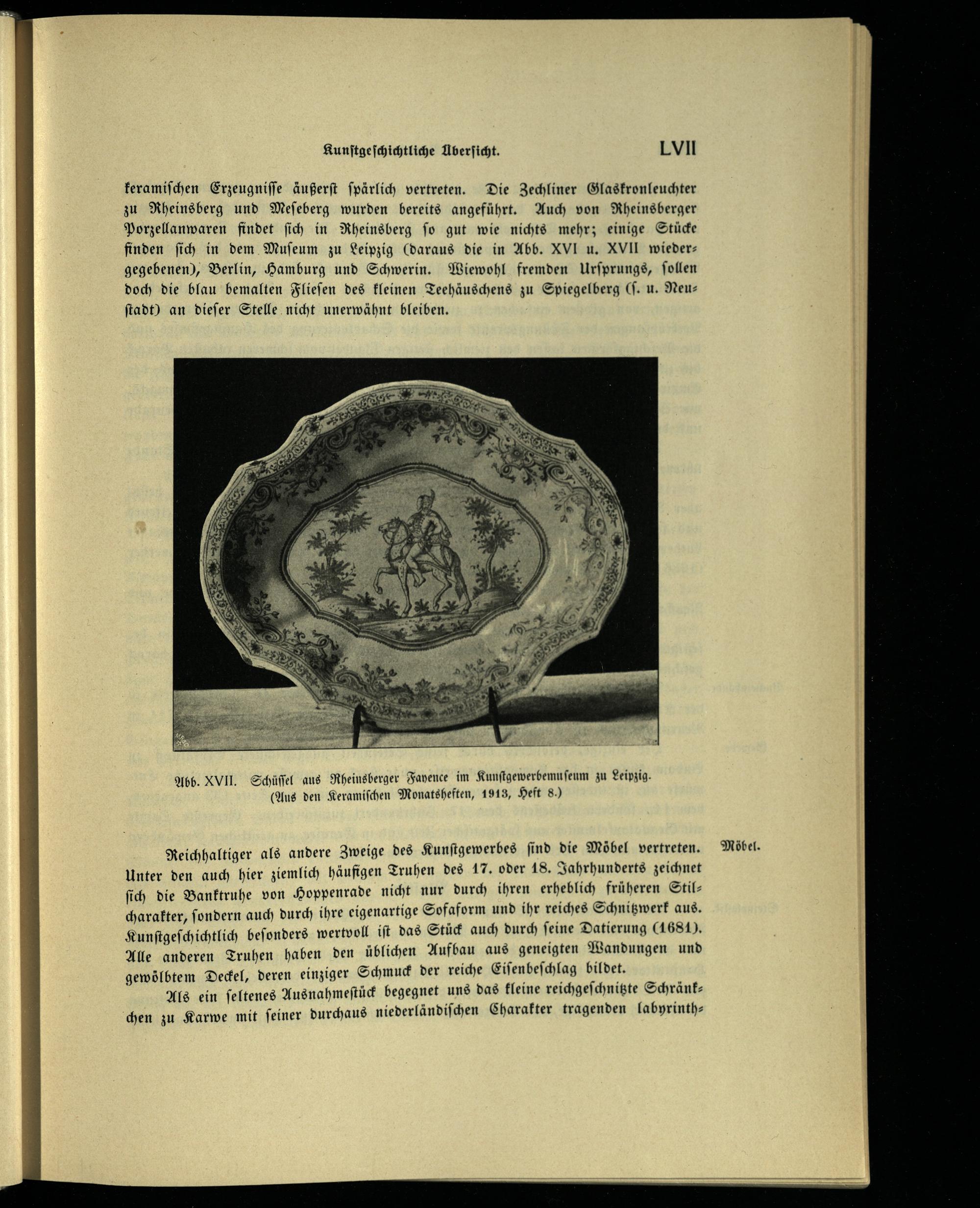 Abb. XVII. Schüſſel aus Rheinsberger Fayence im Kunſtgewerbemu ſeum zu Leipzig . (Aus den Keramiſchen Monatsheften, 1913, Heft 8.)